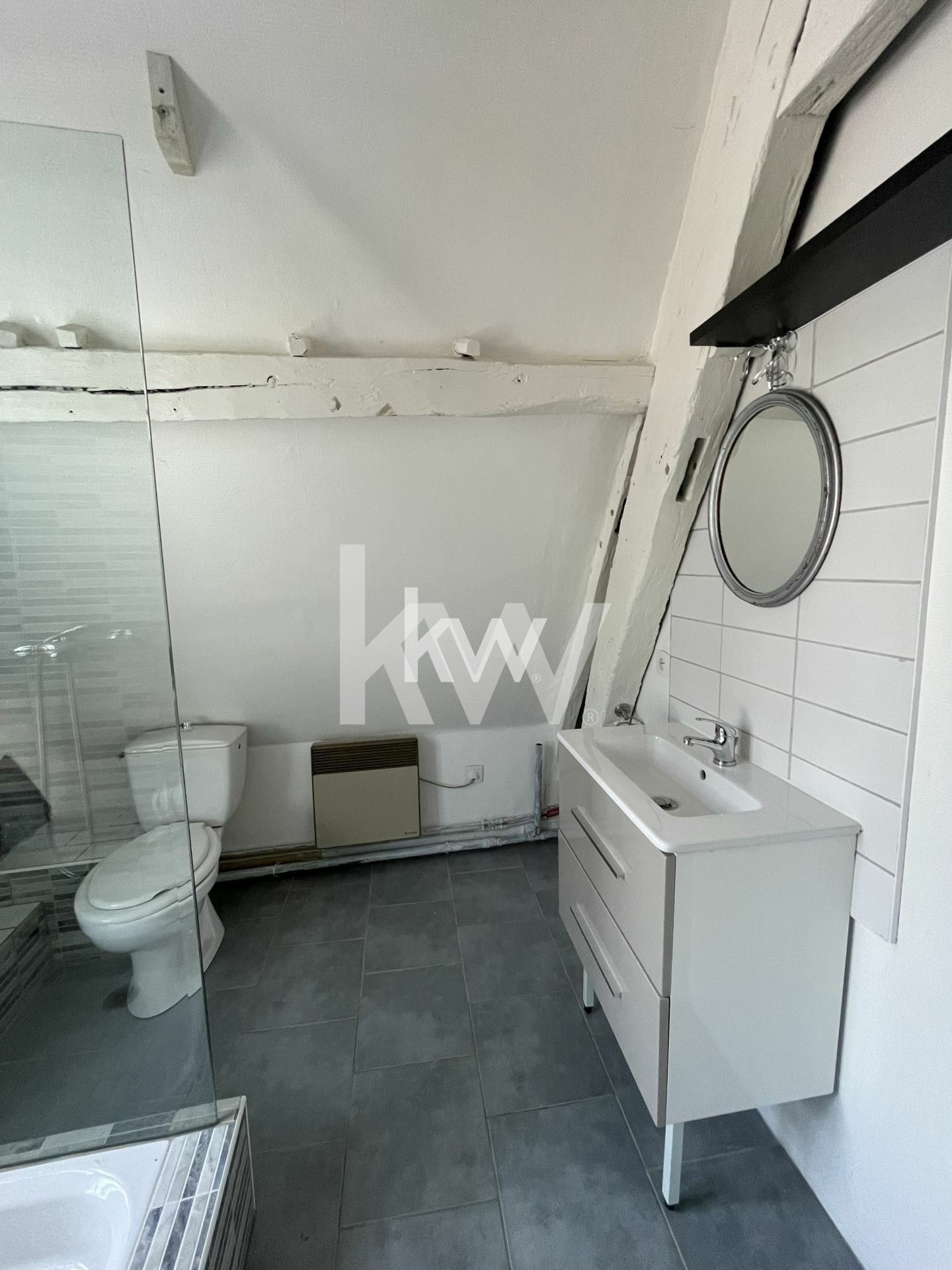 Au deuxième étage, vous trouverez une salle d'eau avec WC, ainsi qu'une spacieuse chambre qui vous offrira tout l'espace dont vous avez besoin pour vous détendre et vous ressourcer.