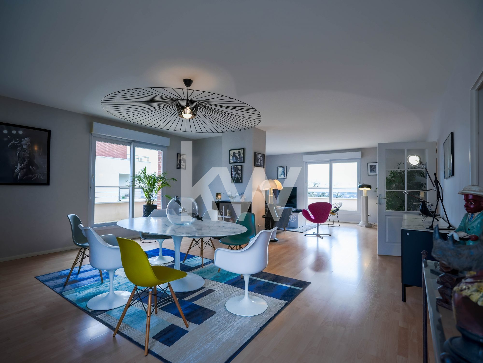 Très grand appartement de 122 m² au 4e étage d'un immeuble avec ascenseur. Son intérieur compte deux chambres et une cuisine aménagée équipée. En complément, on trouve deux garages et deux terrasses. Quartier attractif, proche de toutes commodités, des établissements scolaires et des transports.