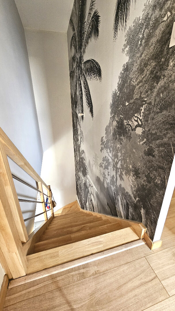 À l'étage, trois chambres aux volumes généreux (13.5 m², 16 m², 21.60 m²) se partagent une salle de bains de 7.92 m² et des WC indépendants.