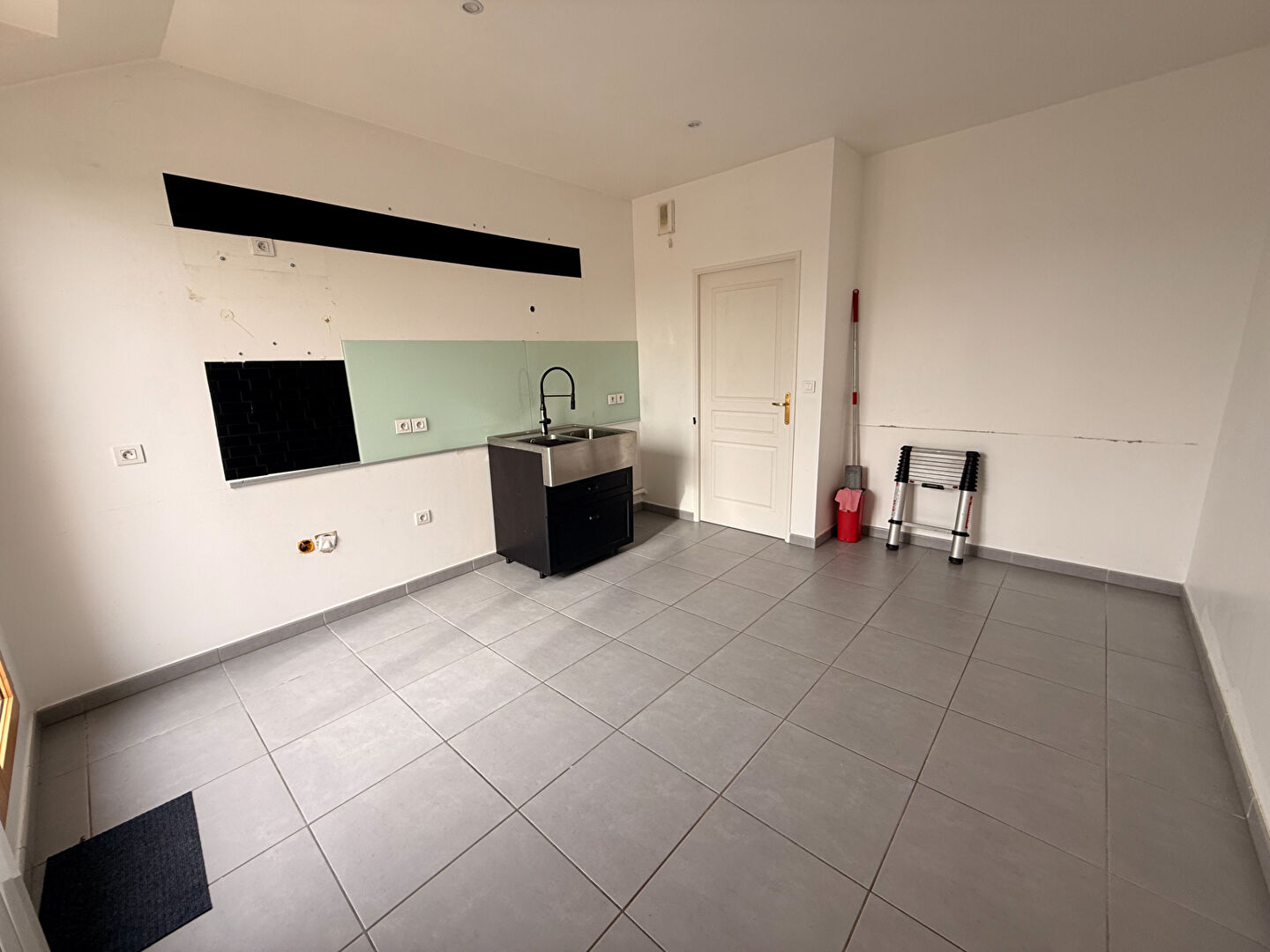 Une entrée avec placard, un séjour donnant sur la terrasse exposée sud / ouest, une cuisine à équiper, un bureau ou chambre avec placard, dégagement et un WC.