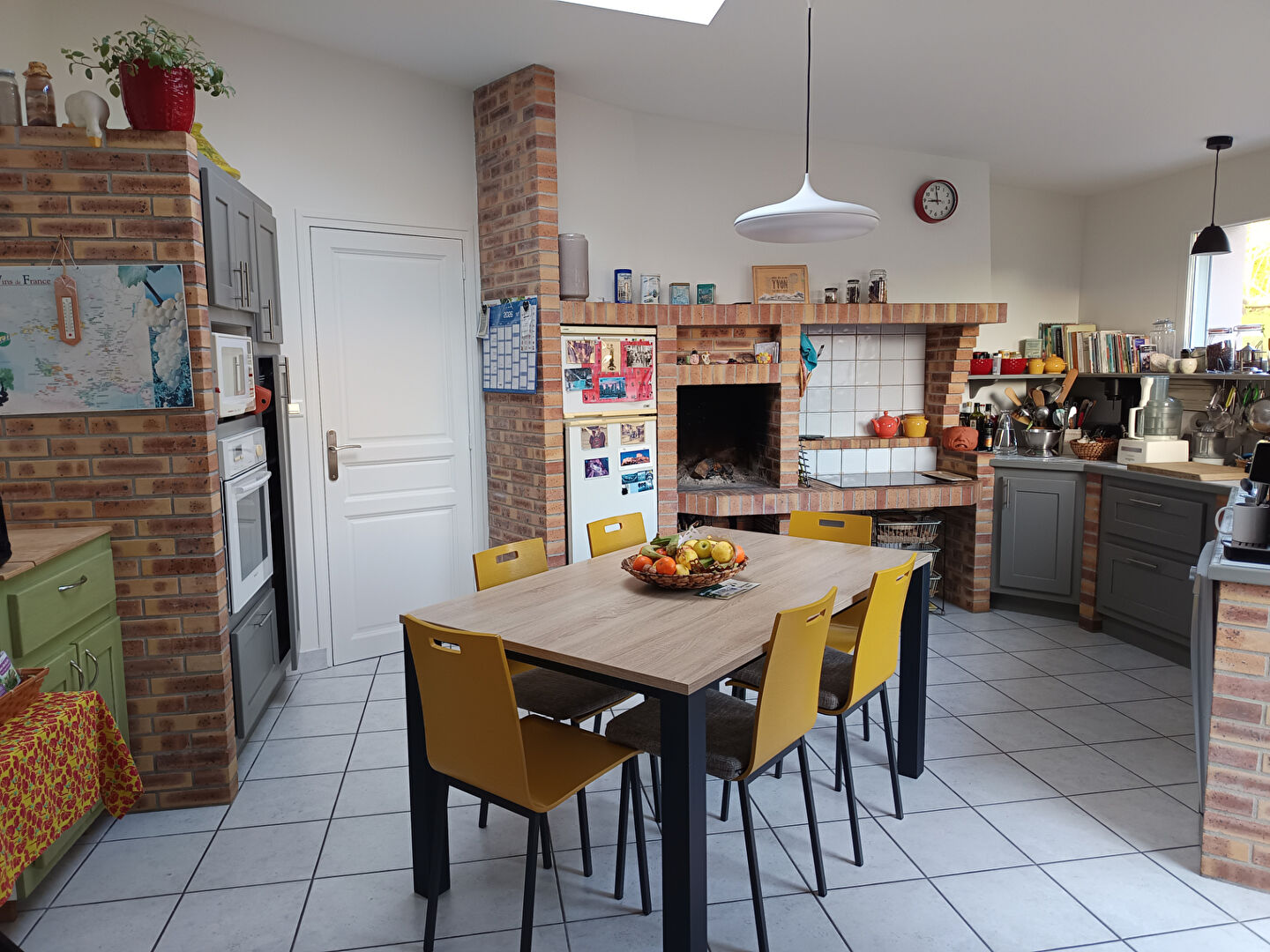 La maison s'ouvre sur une grande pièce de vie traversante avec cheminée, ainsi qu'une vaste cuisine lumineuse tournée vers le jardin, invitant à profiter pleinement de l'extérieur au quotidien.
