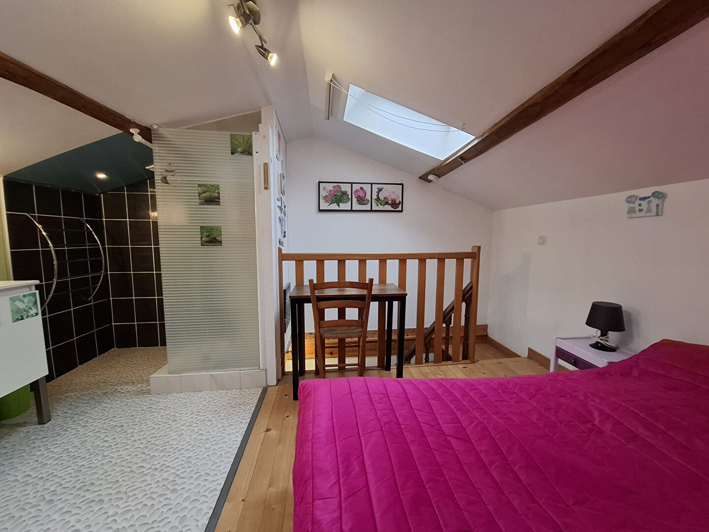 Elle propose deux espaces de vie communiquant, deux chambres confortables dont l'une disposant d'une salle d'eau attenante, un wc séparé, un espace bureau/dressing idéal pour le télétravail ou un projet évolutif, une salle d'eau indépendante avec second wc.