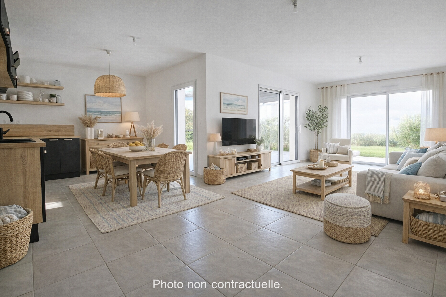Vaux sur mer, à 1800 m de l'océan et 750 m des commerces, maison contemporaine de plain pied de 2021 d'environ 100 m² offrant une entrée avec placard, un vaste séjour cuisine aménagée ouvrant sur une terrasse avec pergola bioclimatique, 2 chambres avec placard, une salle de bains avec douche, une suite parentale avec sa salle d'eau, un wc indépendant, un cellier. Un garage et une place de parking complètent le tout. Jardin clos et arboré (Piscinable).