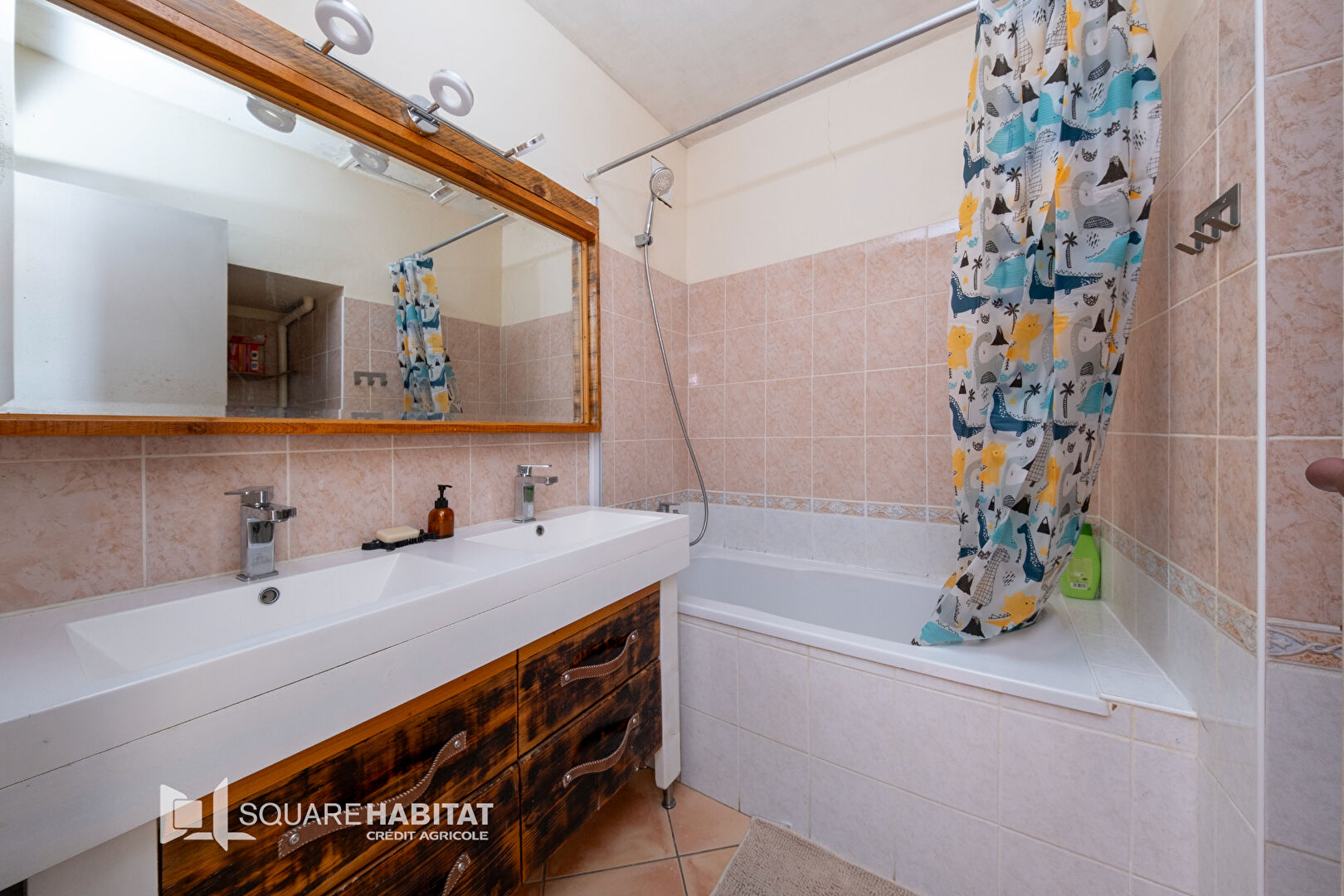 Salle de bain double vasque avec WC.