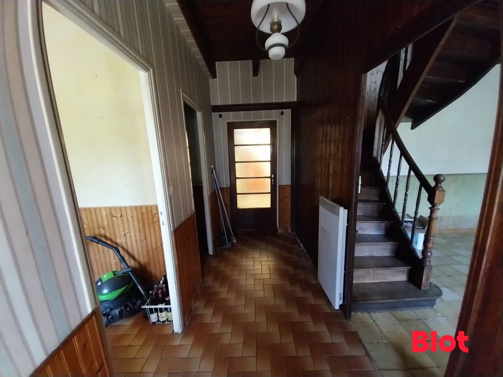 Au rez-de-chaussée: un couloir dessert une belle pièce de vie d'un côté, une cuisine de l'autre, ainsi qu'une salle d'eau et un WC.