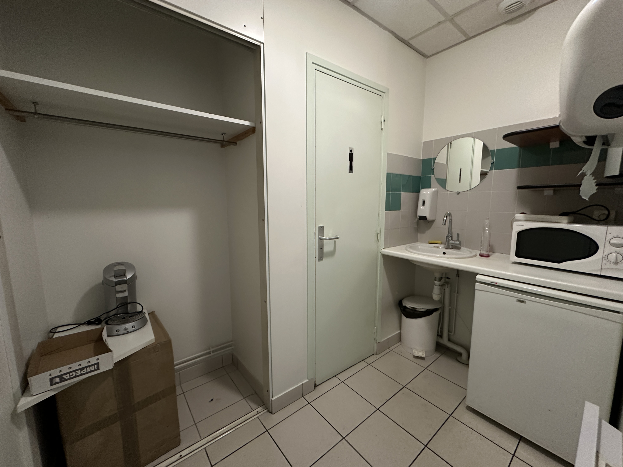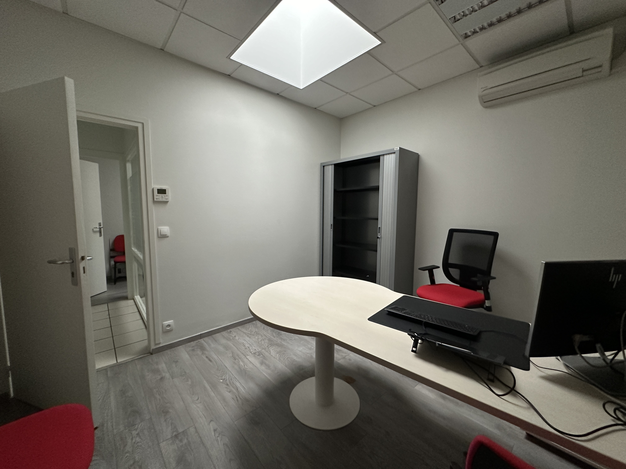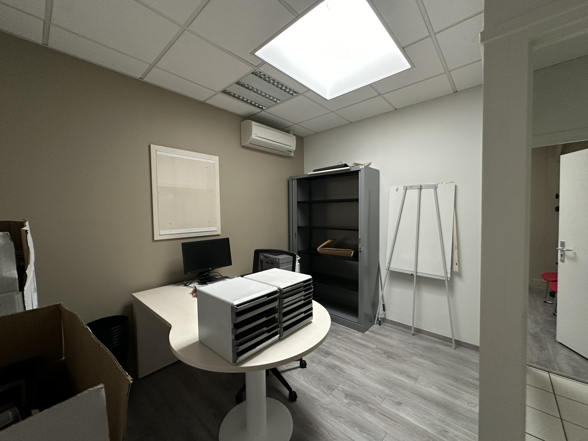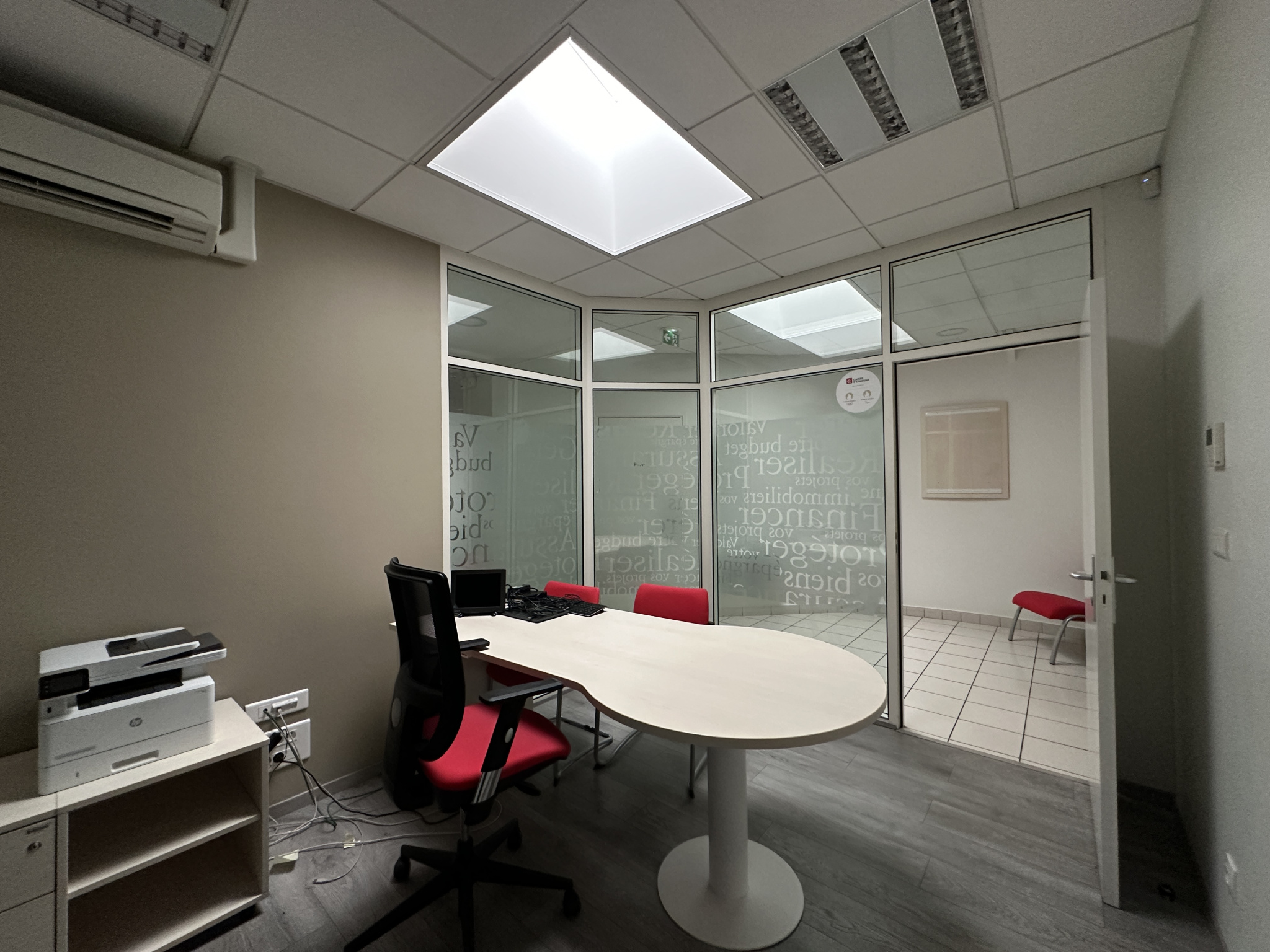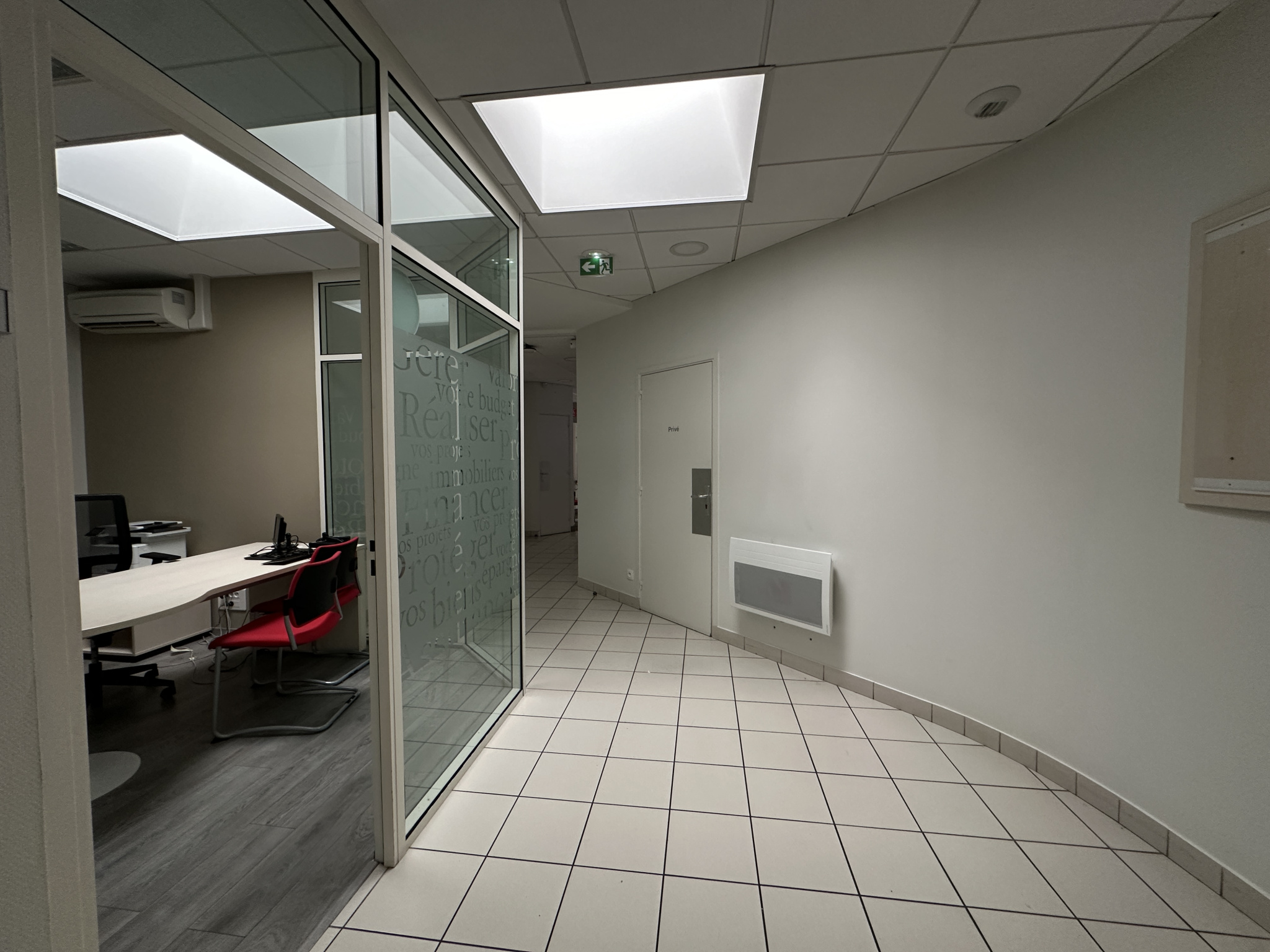Le rez-de-chaussée s'ouvre sur un espace d'accueil de 39,79 m2, un dégagement conduisant à 4 bureaux indépendants (9,70 m2 / 9,86 m2 / 9,88 m2 / 10,25 m2, tous équipés d'un puits de lumière), un local informatique, une remise et un espace cuisine / sanitaires. Le rez-de-chaussée est entièrement climatisé.
