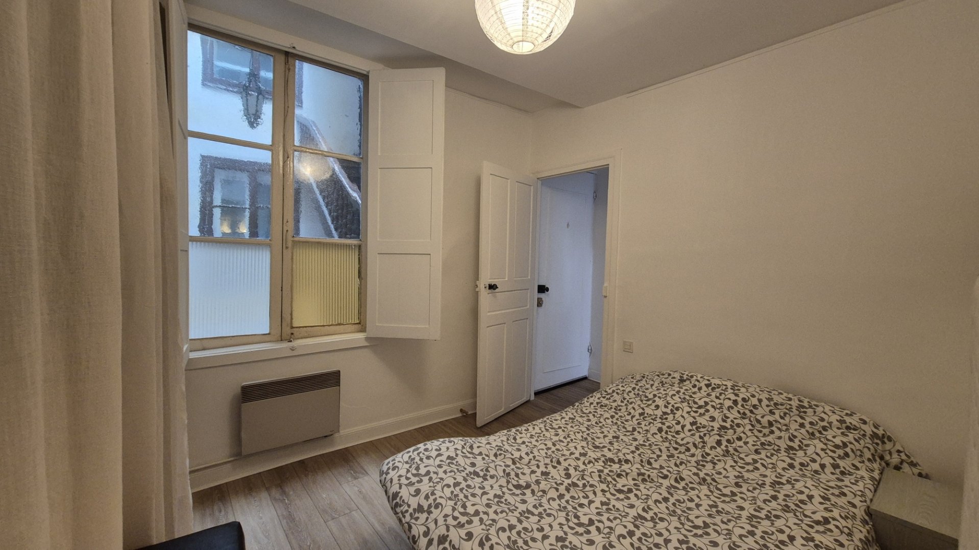 Il est composé de : un dégagement desservant une chambre sur la cour intérieure, une salle d'eau avec wc et une cuisine équipée ouverte sur un salon-salle à manger lumineux.
