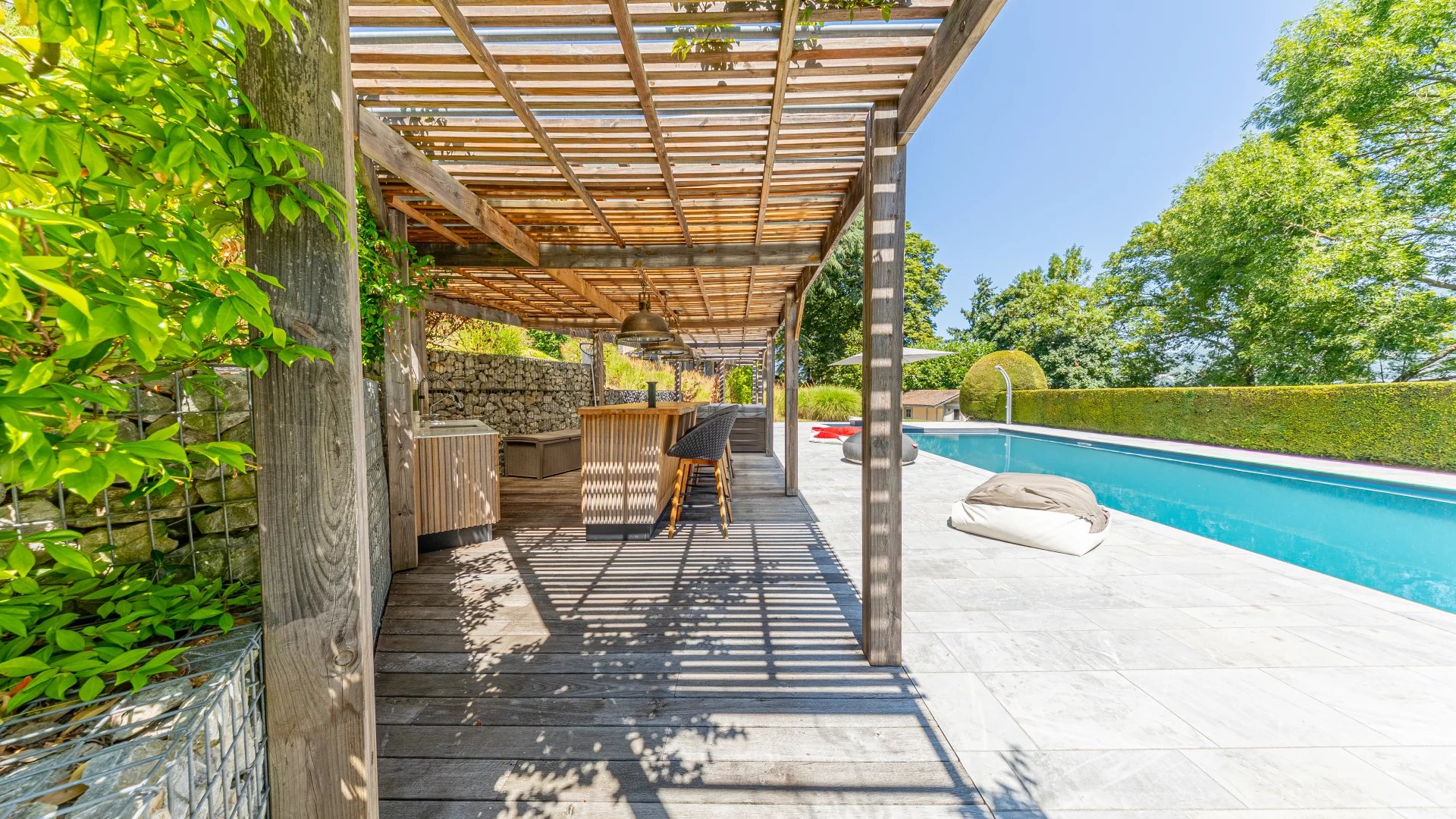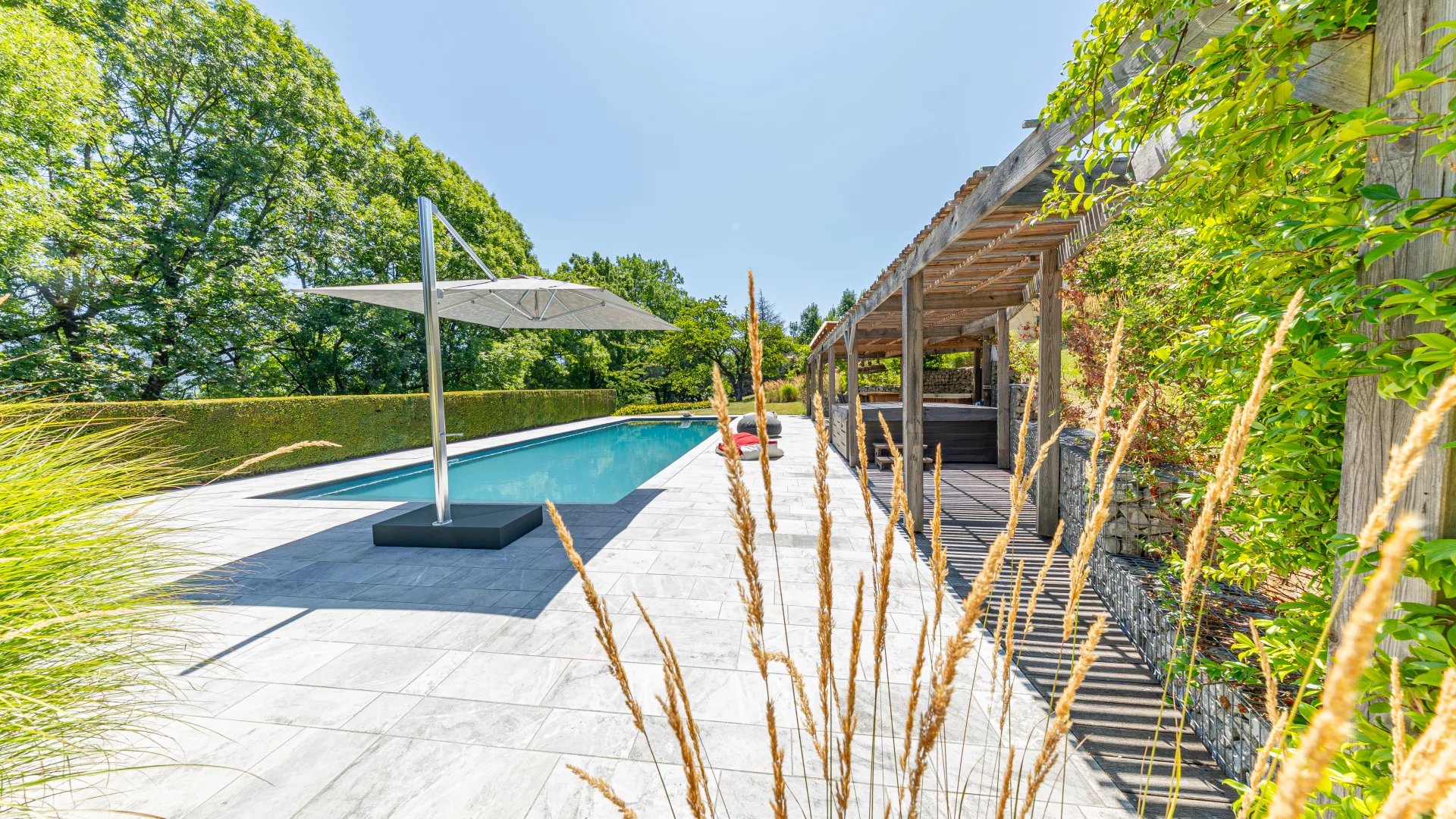 Implantée au sein d’un parc paysager de près de 1,3 hectare, cette demeure d’exception développe environ 600 m² habitables répartis sur quatre niveaux, avec de superbes volumes de réception baignés de lumière, une piscine chauffée 12×4 m, un espace bien-être et de vastes terrasses aux lignes soignées.