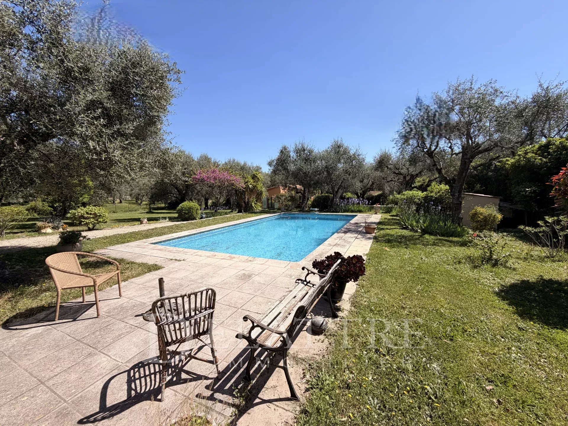 Nichée au calme dans l’un des secteurs les plus préservés de la commune, cette belle propriété s’inscrit au cœur d’un jardin paysager planté d’oliviers centenaires.