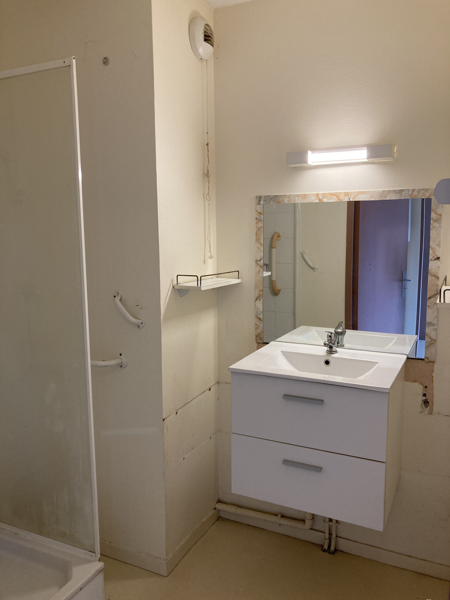 Ce bien comprend une entrée avec placard, un séjour avec kitchenette ouverte et placard, une chambre avec placard , une salle de bains, un WC.