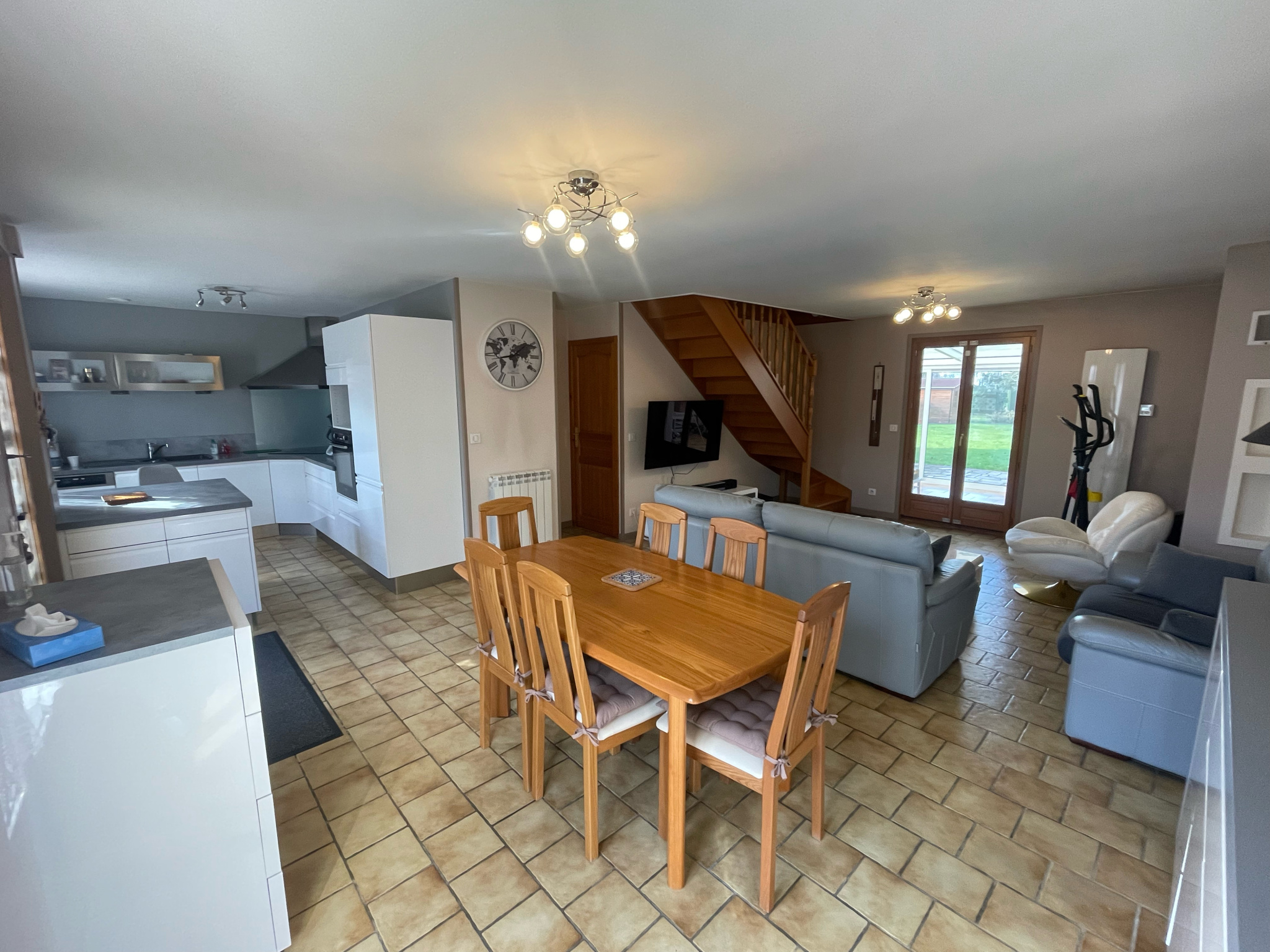 Au rez-de-chaussée : cuisine aménagée ouverte sur salon / séjour avec cheminée à insert, une chambre, salle d'eau, wc.
