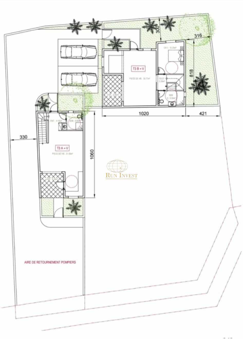 Précision importante : une étude avec un plan d'implantation avait été réalisé pour deux constructions de type F4 et F3.