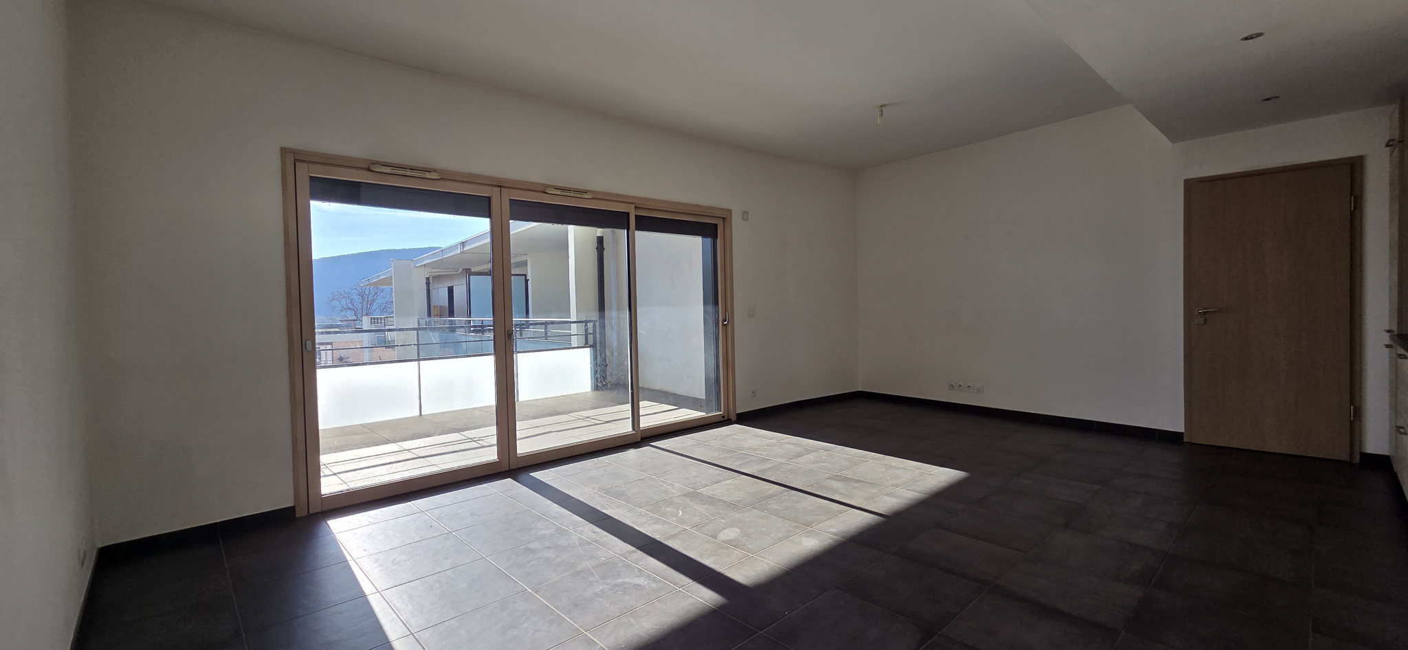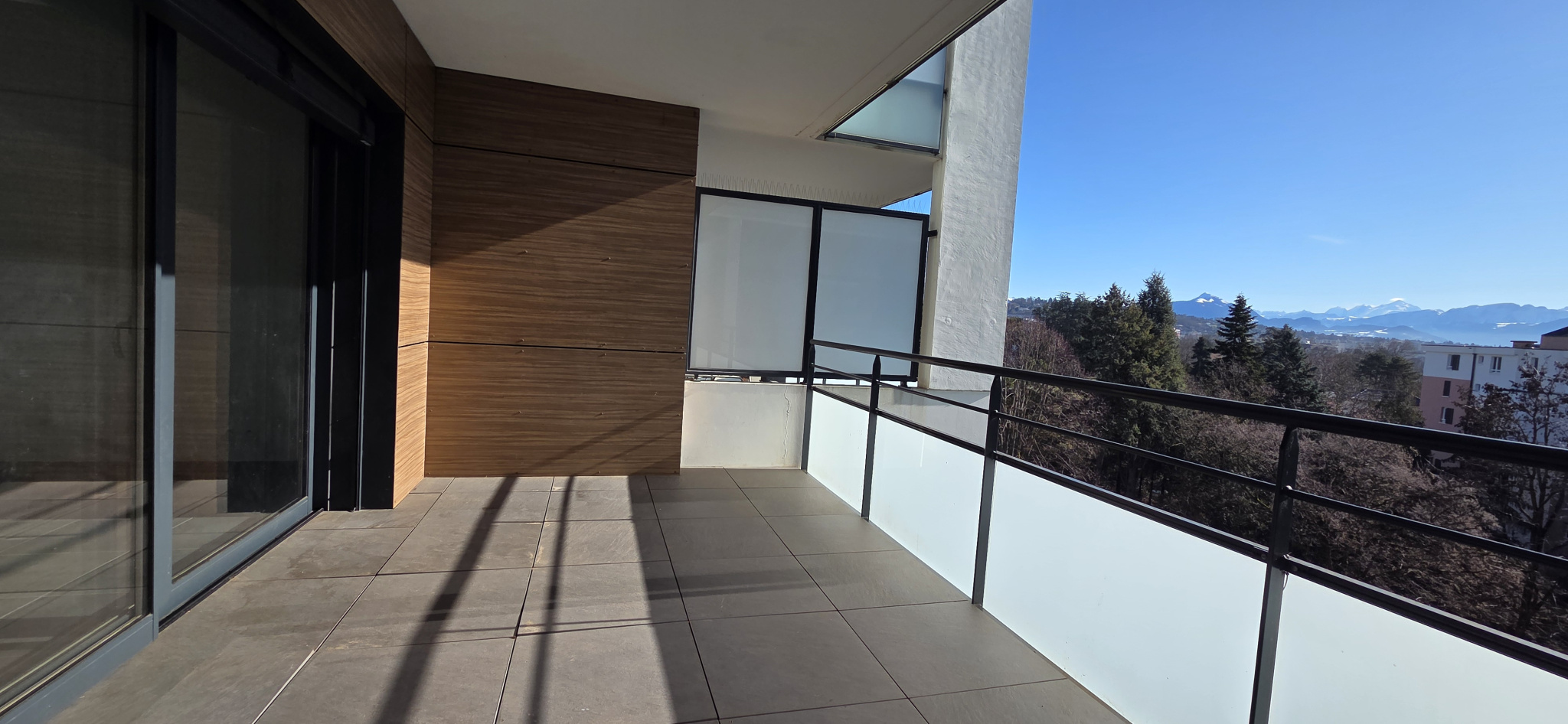 Dans la Résidence de haut standing LA VILLA DES IRIS datant de 2016 sur l'axe du tram ligne 17 - Grand T3 de 78 m2 au 5ème étage avec vue imprenable sur le Mont-Blanc - Il comprend une cuisine équipée ouverte sur séjour et terrasse de 14 m2 - un cellier- deux chambres dont une avec placard et une avec balcon - une salle de bains- un wc ind avec lave mains. Garage double.
