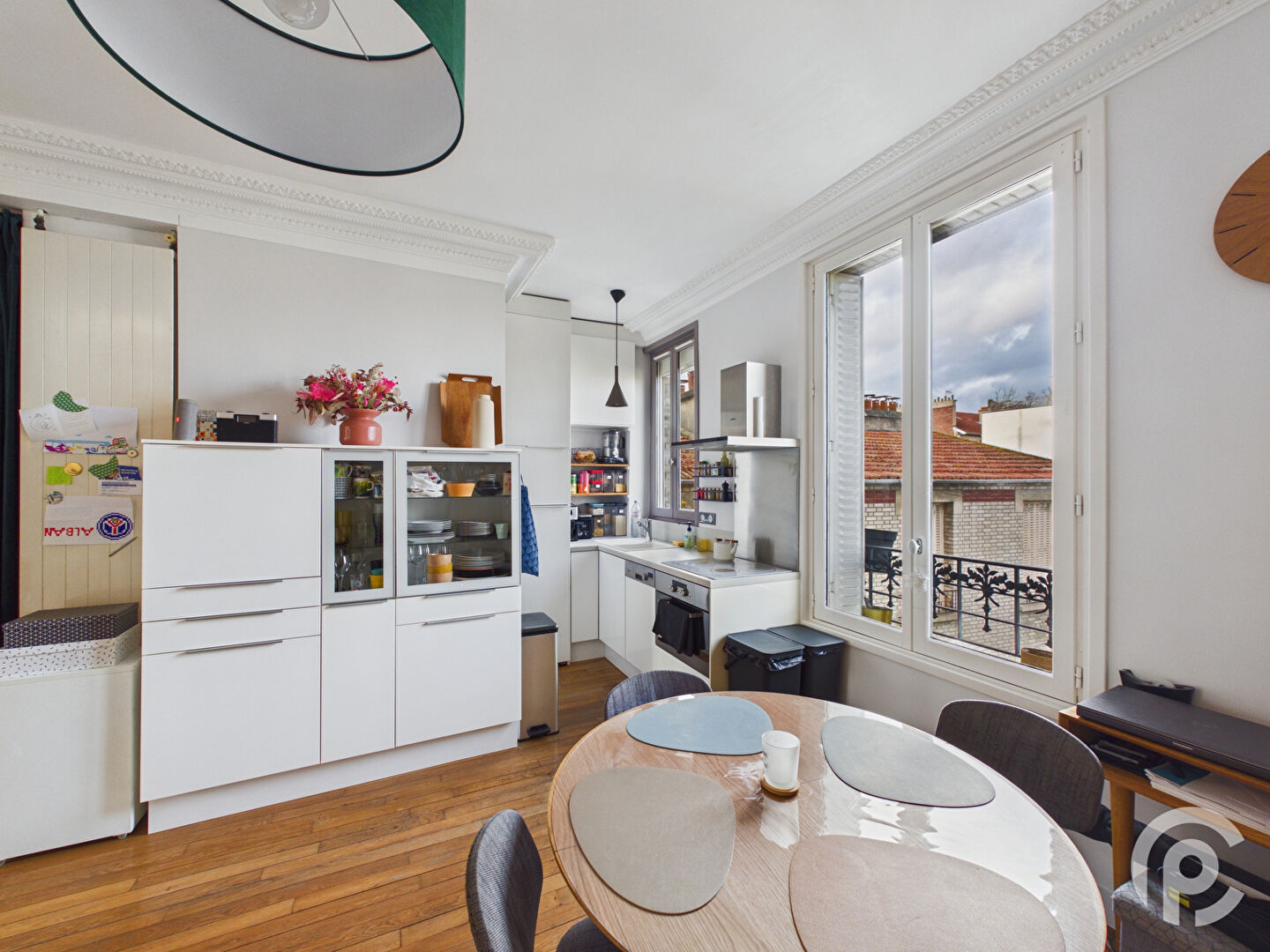 Quartier gare, dans une petite rue calme, au 4ième et dernier étage d'un immeuble ancien en briques, agréable 3 pièces de 49.5 m² réagencé par un architecte. Cet appartement très lumineux et en parfait état se compose d'une entrée, d' un séjour avec cuisine ouverte et vue dégagée , 2 chambres, SDB avec WC. Aucun travaux à prévoir, beaucoup de rangements, charme de l'ancien rénové ! Double vitrage et chauffage individuel électrique. Grande cave. Au sein d'une petite copropriété offrant un jardin collectif à ses résidents. Faibles charges de 100 euros par mois. Honoraires à la charge de l'acquéreur 3% ( prix de vente hors honoraires d'agence 320 000 euros). Gare SNCF transilien et futur métro L15 à 10 mn à pied. Vous trouverez tous les commerces de proximité autours de l'immeuble.