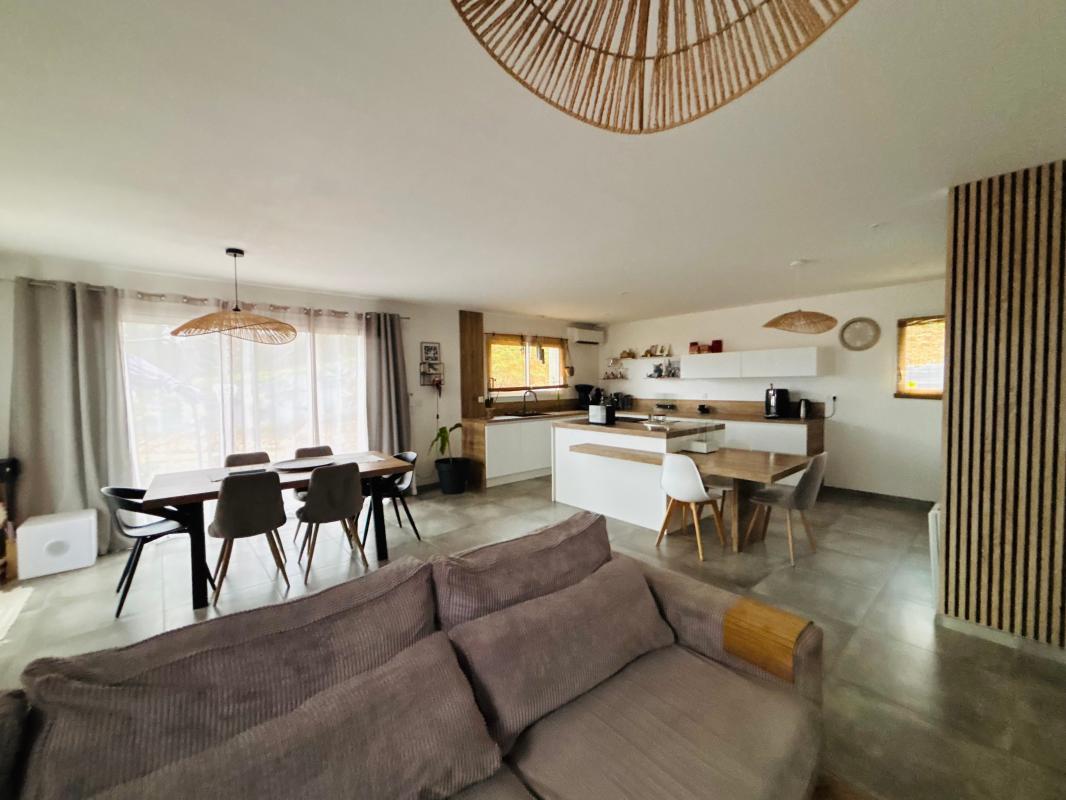 Elle est composée d'une pièce de vie de 45 m² avec cuisine entièrement équipée ouverte sur séjour et salon, trois chambres, salle d'eau et w.c. Un garage vient complété ce bien.