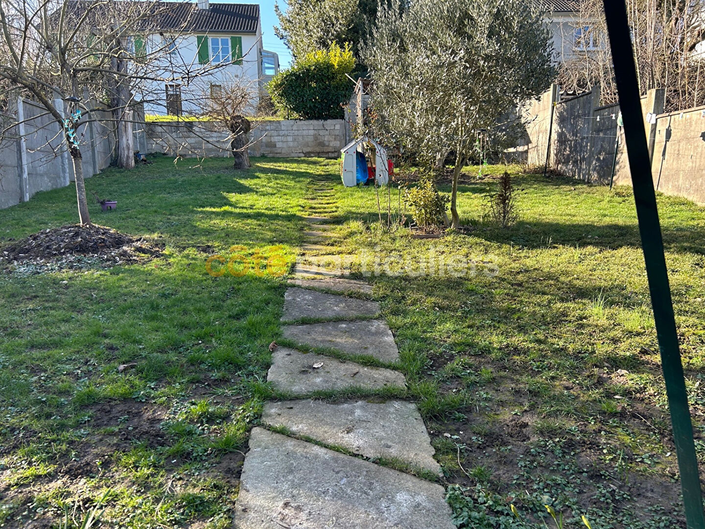 Grand jardin privatif cloturé, petite terrasse avec barbecue.