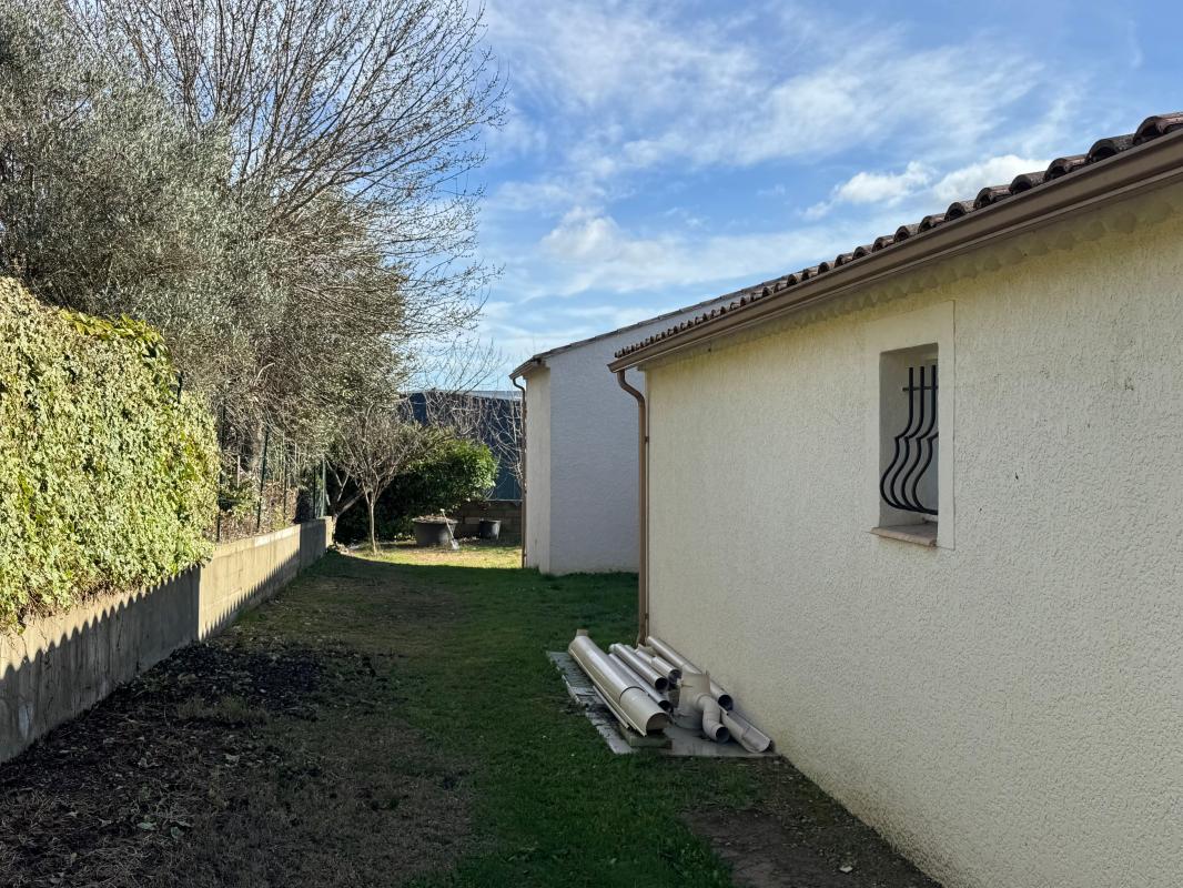 Maison individuelle de plain-pied à usage d'habitation, d'environ 150 m² habitables, implantée sur un terrain clos et arboré de 1 400 m², située dans un secteur pavillonnaire calme, à proximité d'Alès et de toutes les commodités.