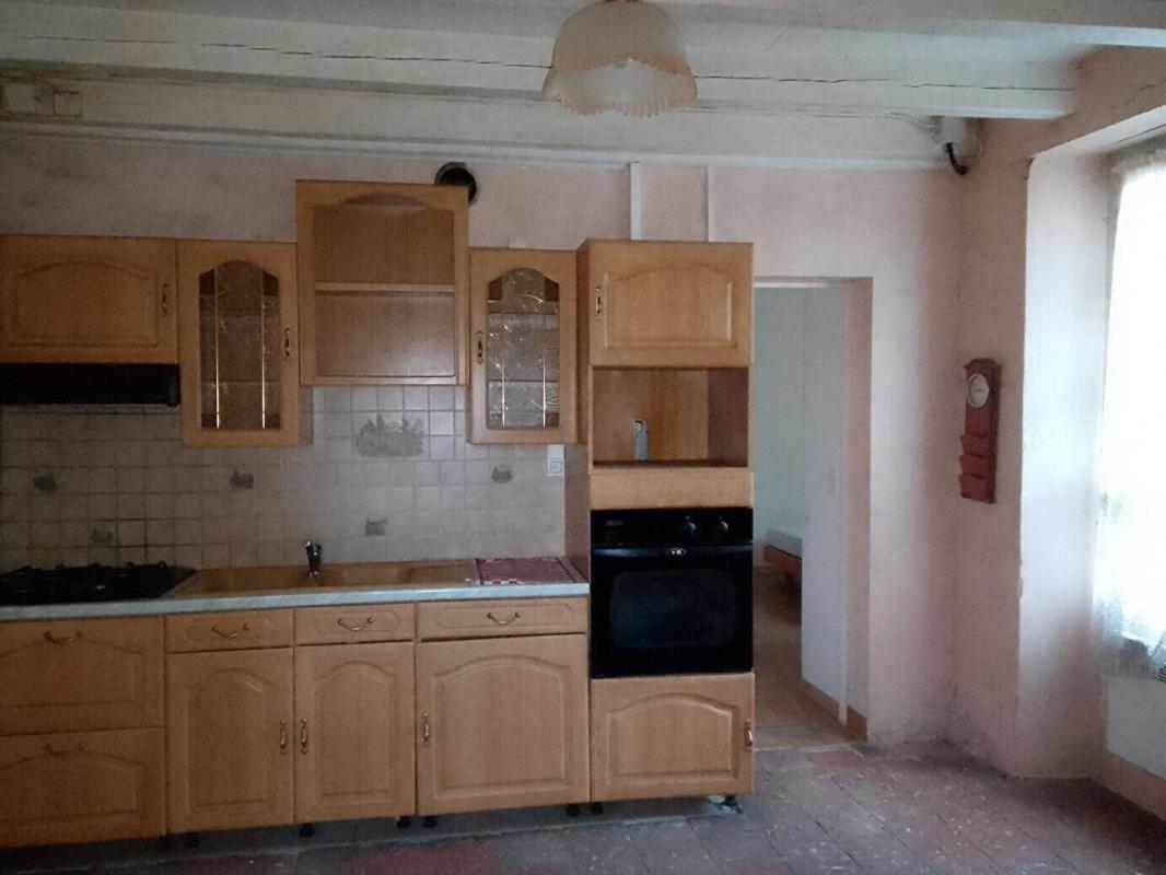 Au rez de chaussée : entrée, cuisine avec cheminée, un séjour avec une deuxième cheminée, une chambre ou bureau, une salle de bain/ douche avec wc.