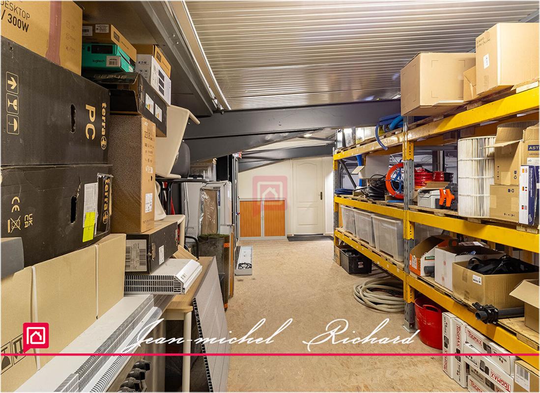 Porte de service, porte sectionnelle motorisée 4.40ml x 4ml, portail coulissant, terrain clos et divisible, bureau équipé de la fibre, bâtiment isolé "double peau", raccordement de l'assainissement au tout-à-l'égout, terrain 2200m², casiers de stockage pour matériaux en vracs (type sable, cailloux, gravillons...)