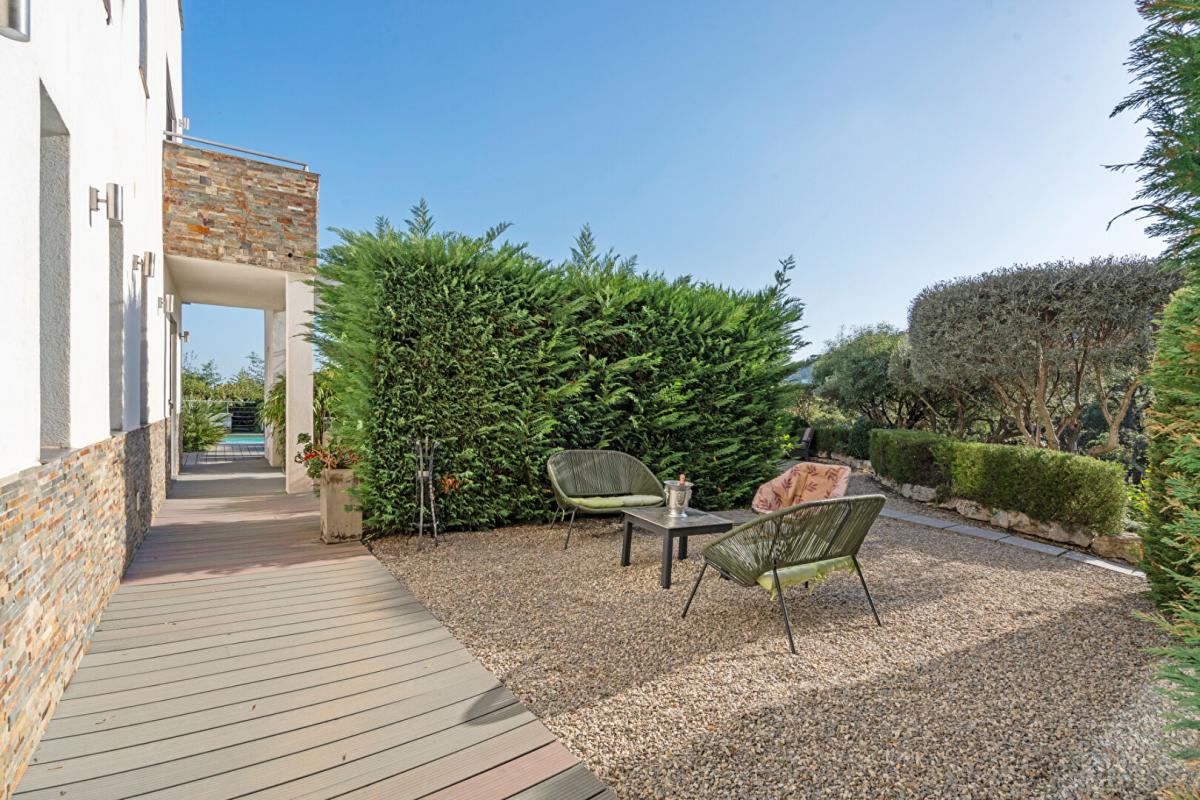 Les extérieurs dévoilent un art de vivre méditerranéen privilégié : piscine 10 x 5 m avec large plage ensoleillée, pool house, terrain de pétanque, espaces détente et plusieurs stationnements accessibles par deux entrées distinctes.