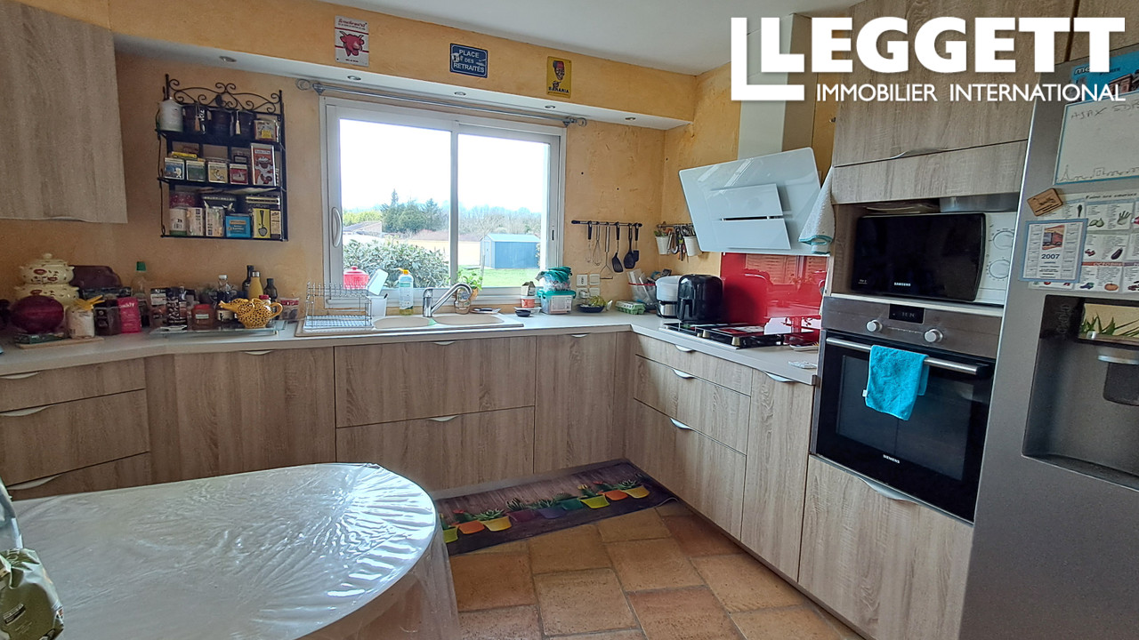 A42763ADS16 - Construite en 2006, cette maison lumineuse et chaleureuse offre de belles prestations dans un environnement paisible. La cuisine ouverte s'ouvre sur un séjour plein de charme avec grandes baies vitrées et insert bois, donnant sur une agréable terrasse.