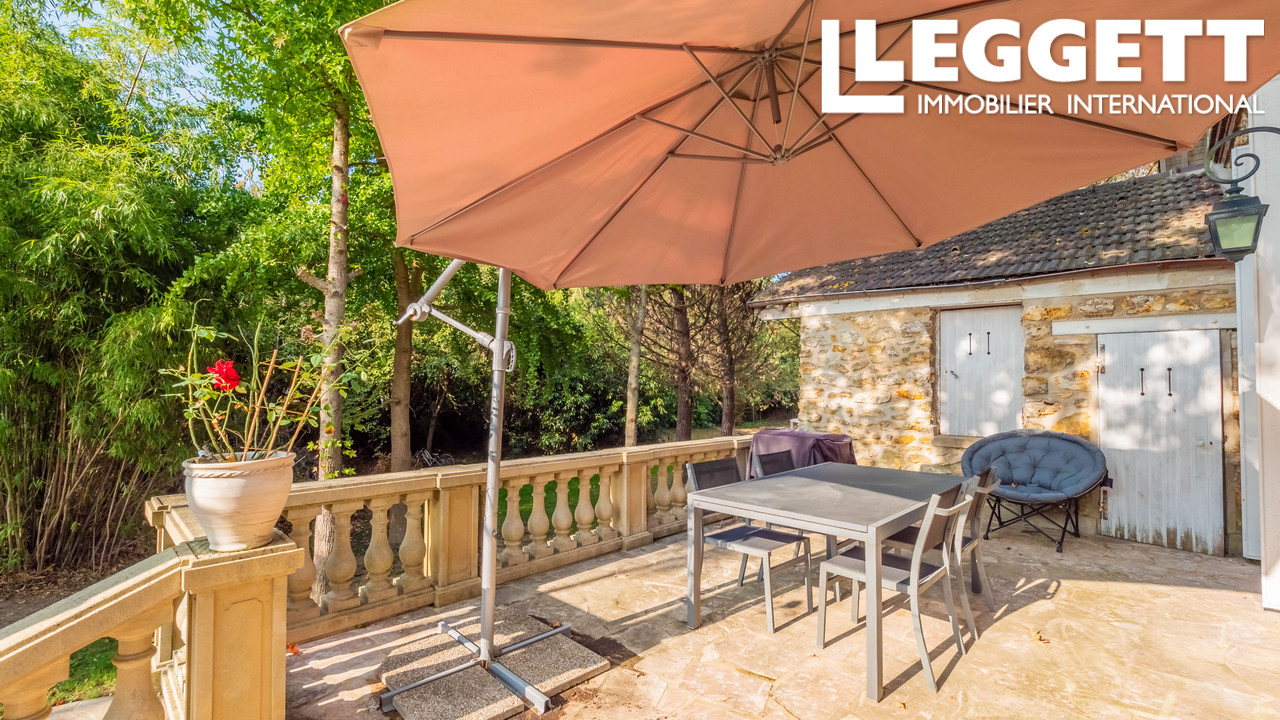 Terrasse donnant sur un parc paysagé de 2 600m² et la Seine.