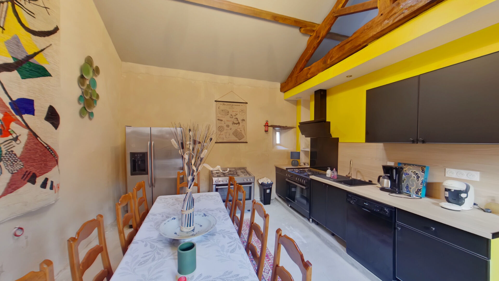 Elle offre sept chambres, un salon avec cheminée, un séjour équipé d'un poêle à granulés, une cuisine, plusieurs salles d'eau, des WC ainsi qu'une salle de sport.