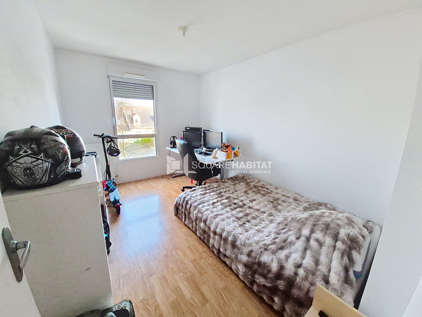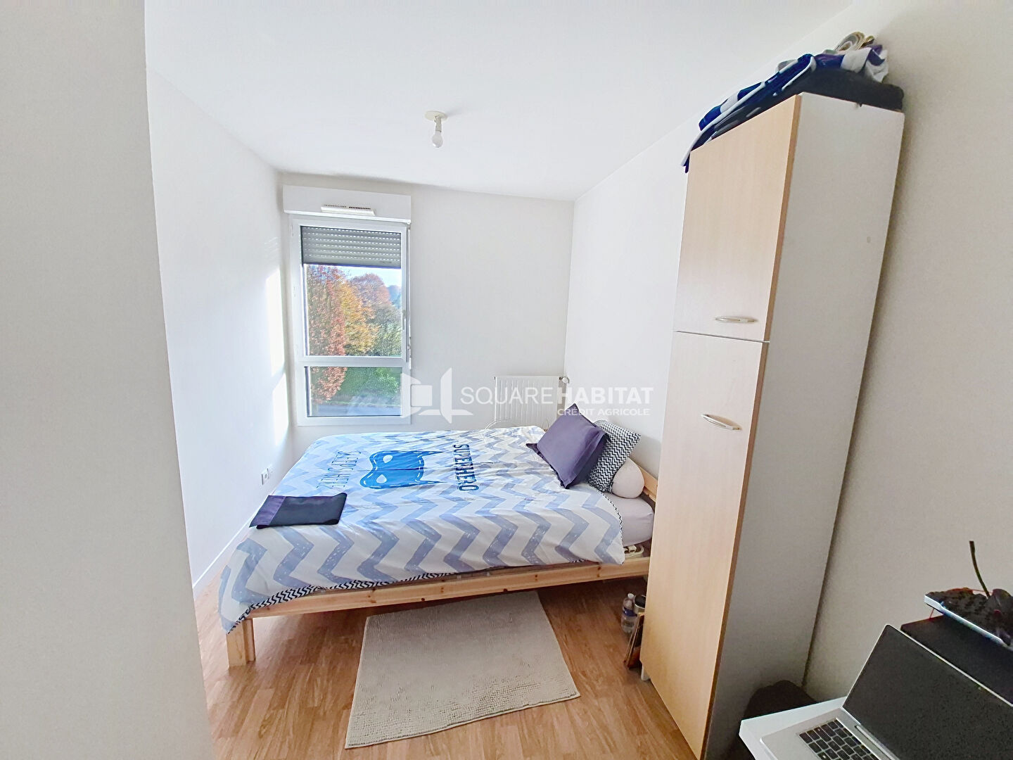 L'appartement se compose d'une entrée avec placard, d'un salon lumineux avec cuisine ouverte, donnant accès à un balcon offrant une vue dégagée sans vis-à-vis sur la campagne.