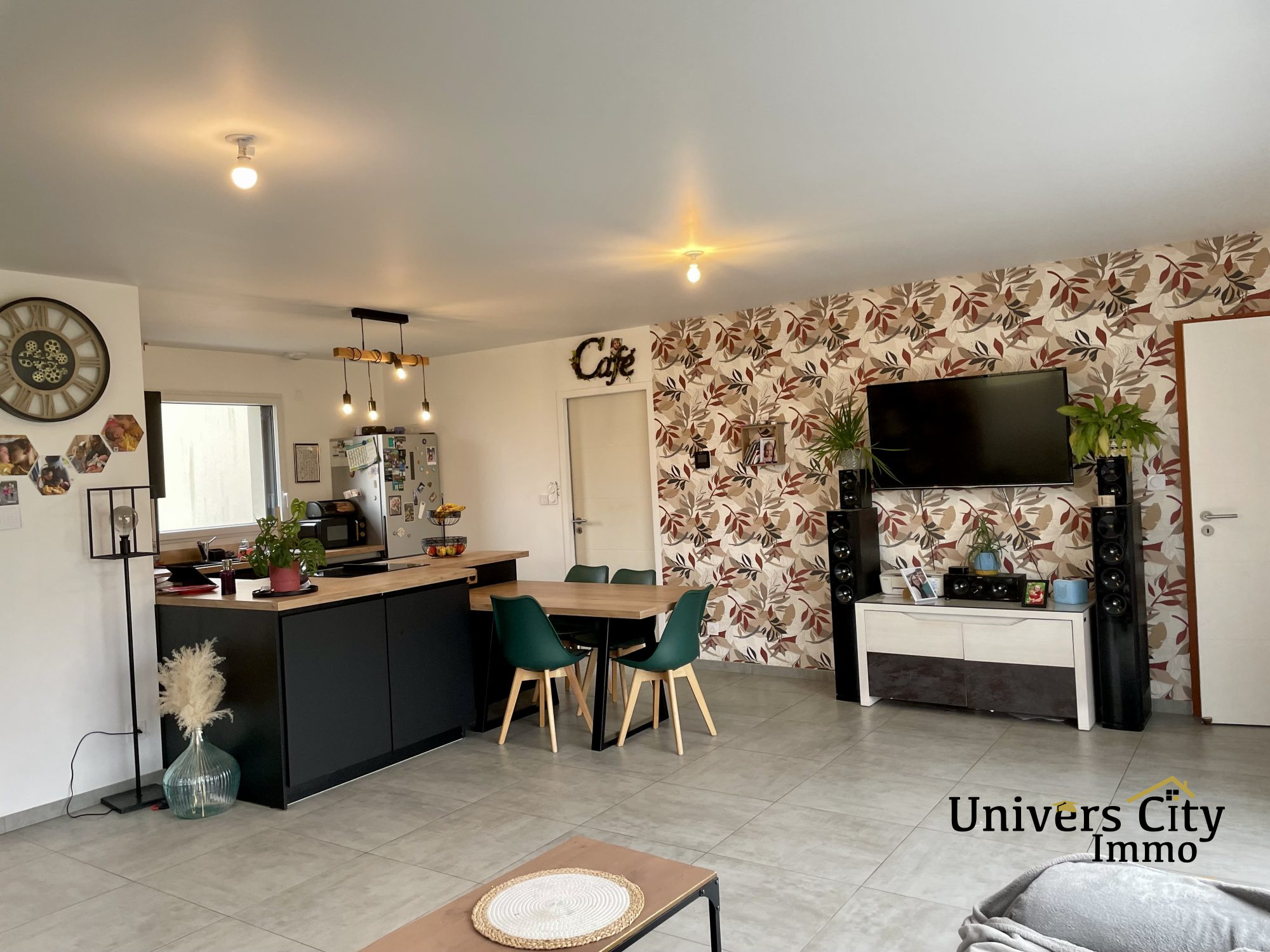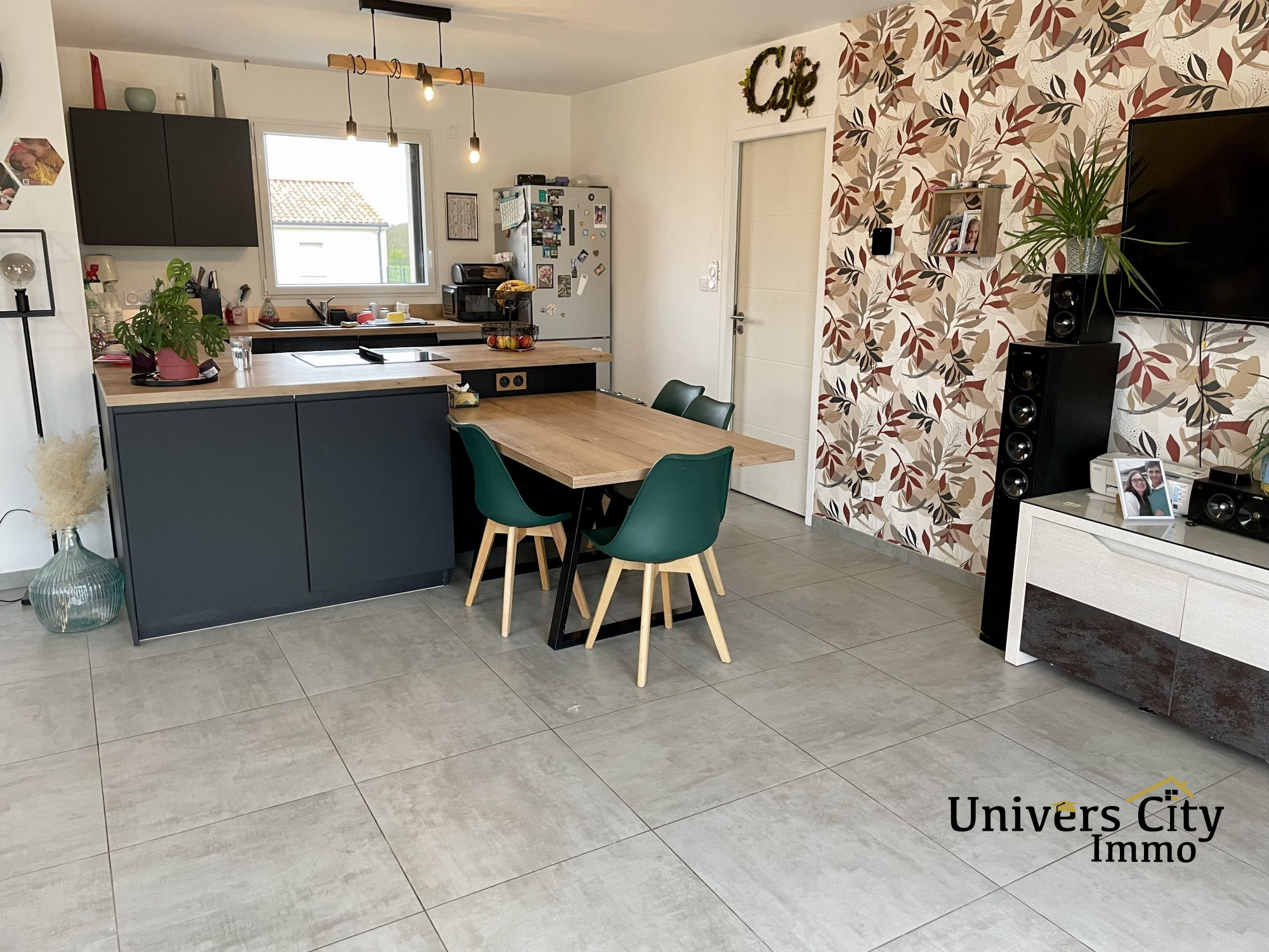 Dès l'entrée, laissez-vous séduire par une belle pièce de vie lumineuse grâce à sa large baie vitrée, ouverte sur une cuisine aménagée et équipée avec hôte intégrée dans la plaque à induction , idéale pour partager des moments chaleureux.