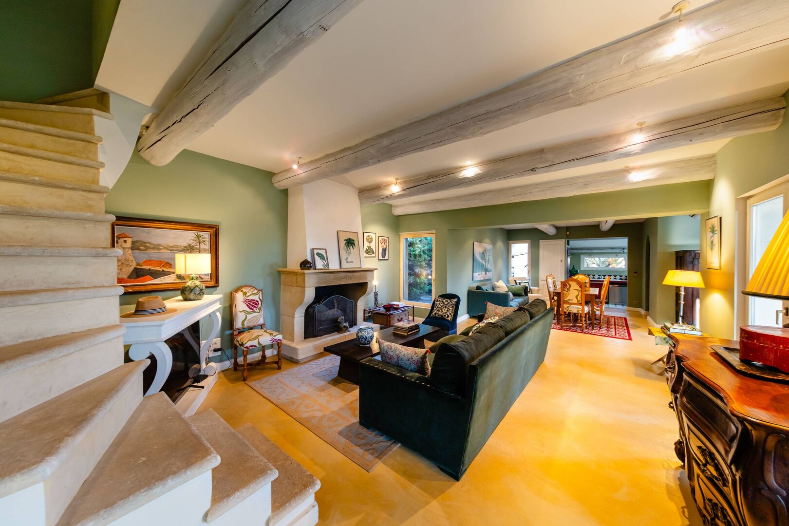Maison au calme, proche commerces, sur terrain clos de 2 600 m² avec piscine et pool house, vue Luberon. Vie majoritairement de plain-pied : séjour, cuisine, deux chambres. À l’étage, suite avec vue sur Gordes. Accès jardin depuis chaque pièce. Grand garage aménageable.
