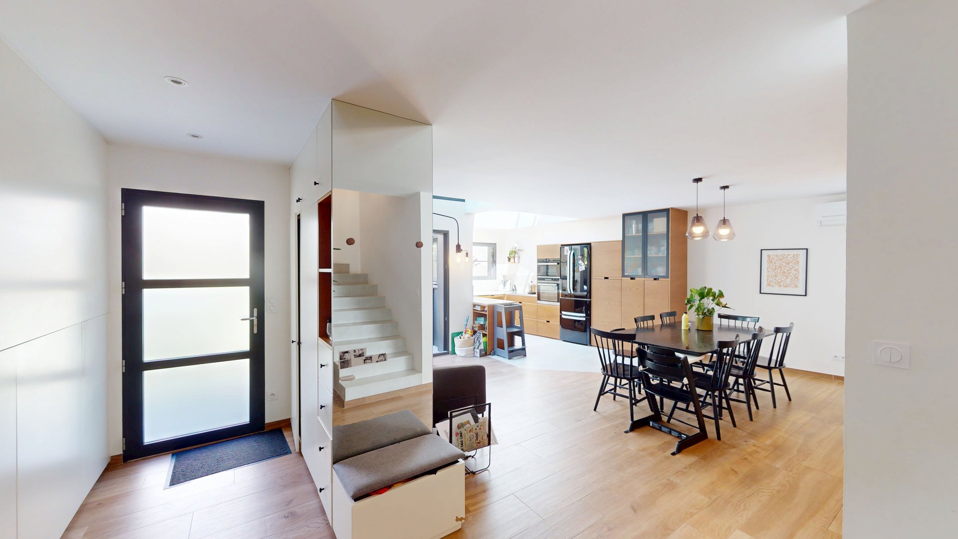 Développée sur trois niveaux, cette superbe rénovation contemporaine cohabite avec le cachet ancien de sa façade tout en offrant des prestations modernes et une luminosité omniprésente.