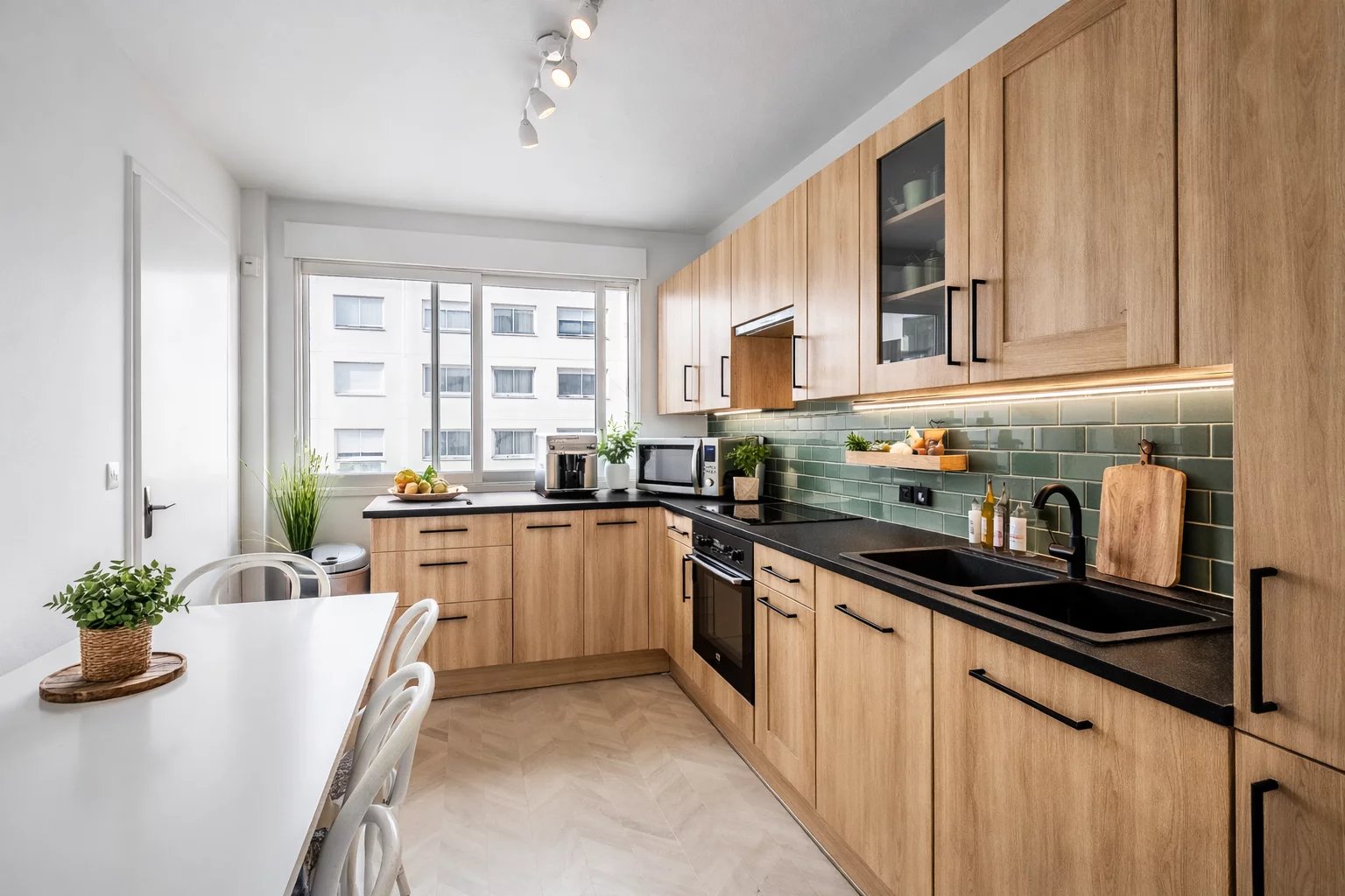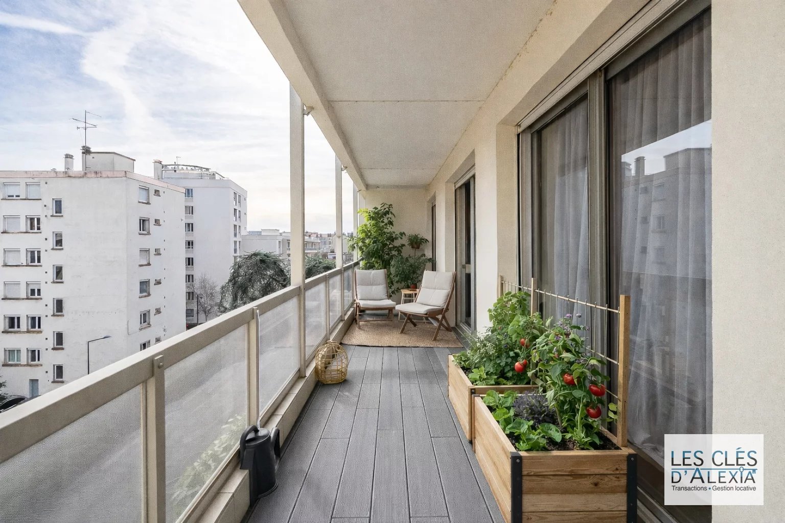 L’appartement séduit par sa luminosité et sa configuration traversante Est/Ouest. L’espace de vie, composé d’un séjour et d’une salle à manger, s’ouvre sur un grand balcon filant de 16 m² courant sur toute la longueur de l’appartement, véritable prolongement de la pièce de vie.