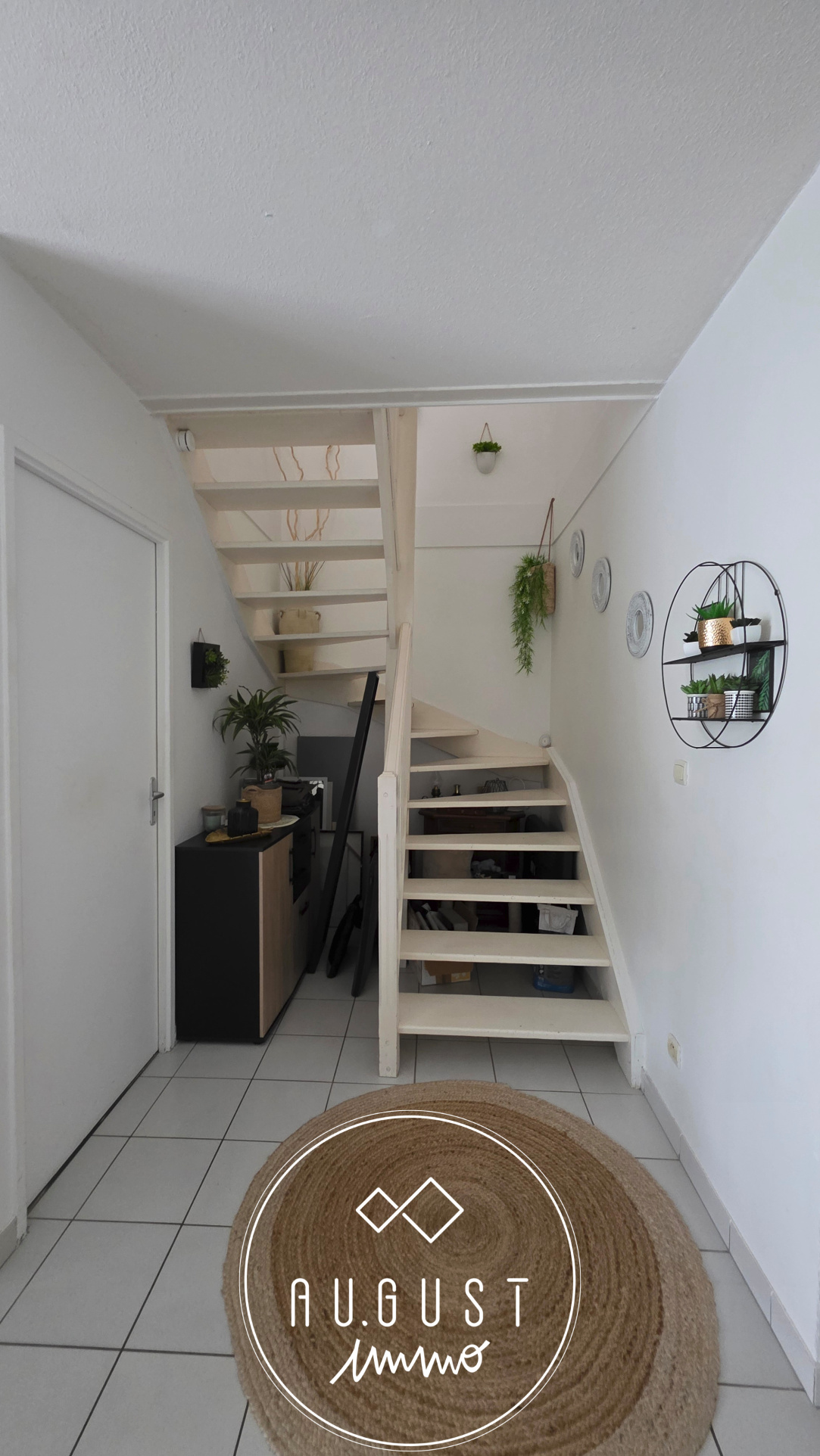 Au rez-de-chaussée, vous trouverez une cuisine séparée, un séjour lumineux ouvrant sur une terrasse et un jardin privatif, ainsi qu'une chambre avec placard.