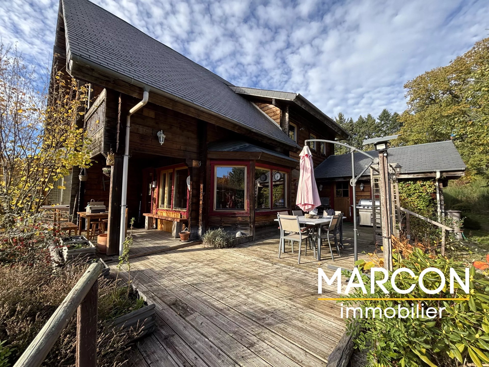 Un joli chalet d'environ 210 m² sur cave comprenant en rez-de-chaussée : Cuisine-salon (presque 80 m²), séjour, une chambre, salle d'eau, wc.
