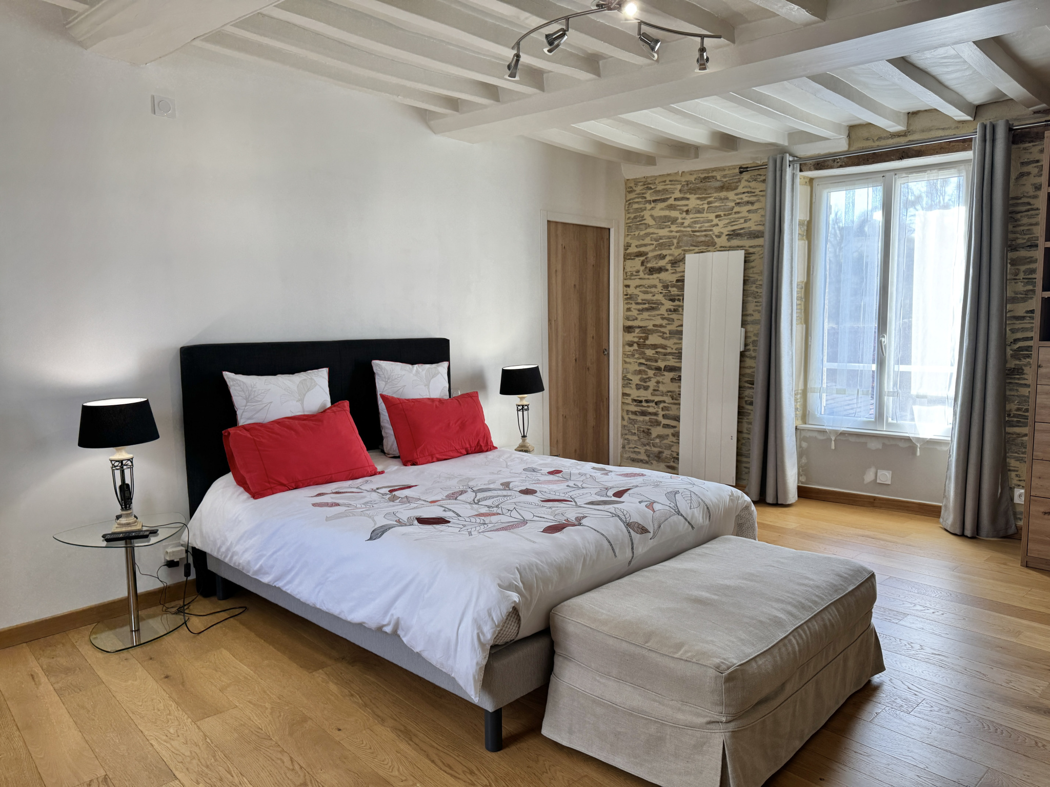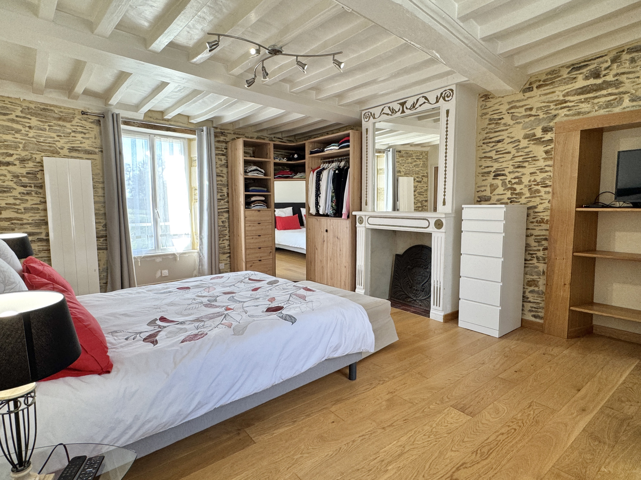 À l'étage, la chambre principale de 23m2 dispose d'un accès direct à une salle d'eau récente avec douche à l'italienne et WC. Le dernier étage accueille une grande chambre avec point d'eau et WC, offrant un espace confortable et indépendant.
