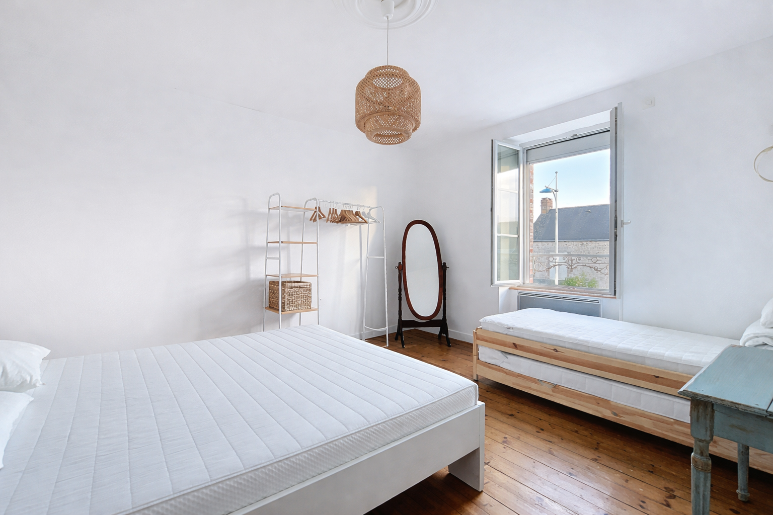 À l'étage, deux chambres et une seconde salle d'eau avec WC. Une troisième chambre indépendante avec accès extérieur complète l'ensemble.