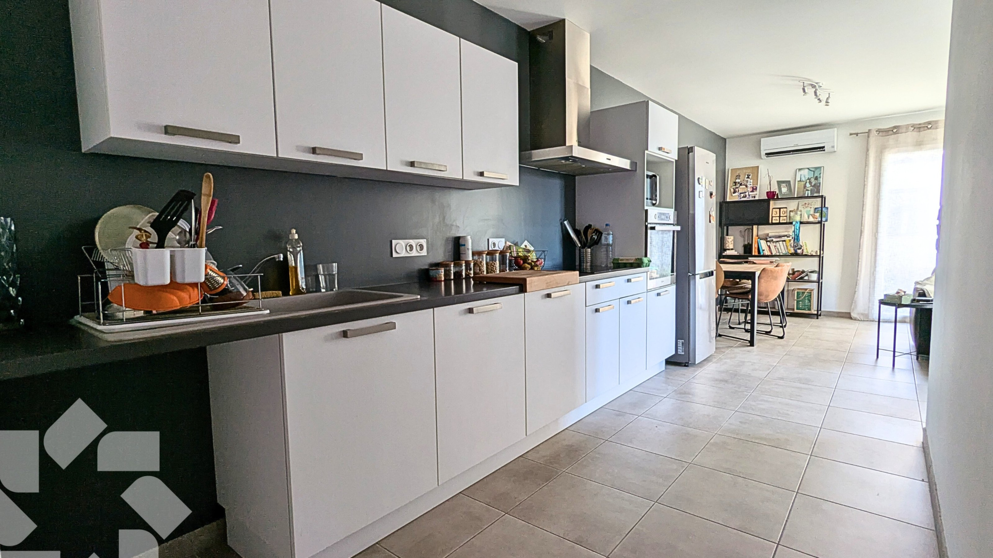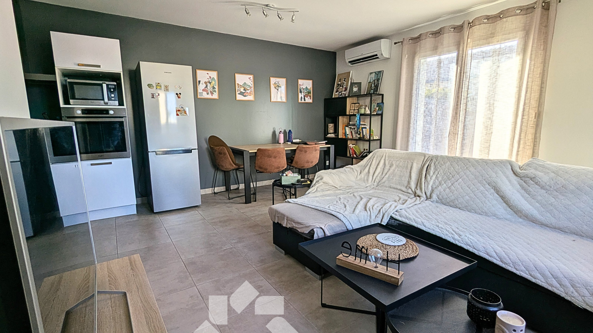 Celle-ci est composée d'un beau salon/séjour/cuisine, de deux chambres avec grands placard, et d'une salle d'eau avec WC.