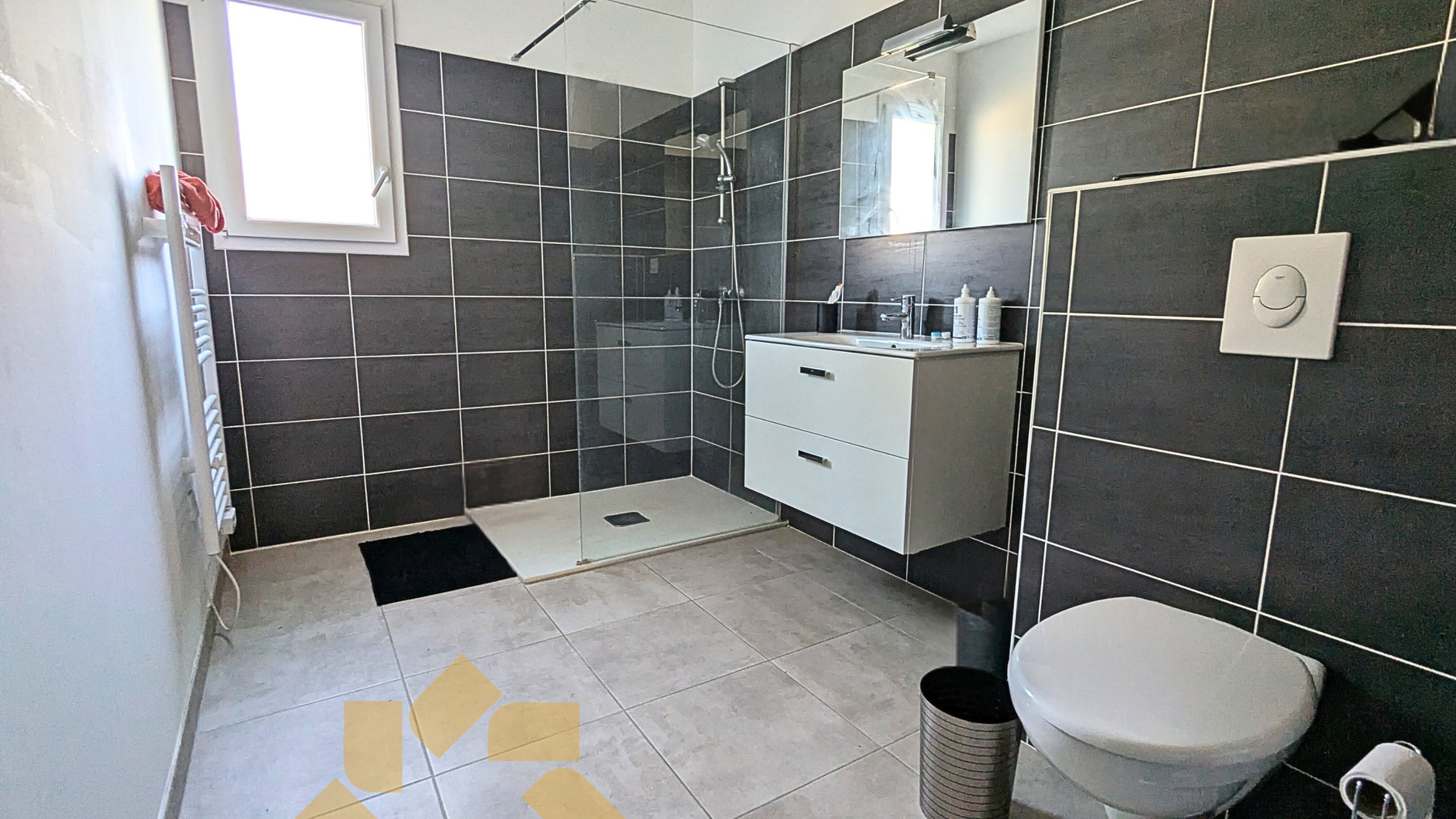 Equipée de la climatisation réversible dans la pièce de vie, d'un chauffe-eau thermodynamique, d'un système de vmc hygroréglable, de menuiseries double vitrage avec volets roulants électriques, d'une isolation ++, elle atteint la note A sur le diagnostic de performance énergétique.