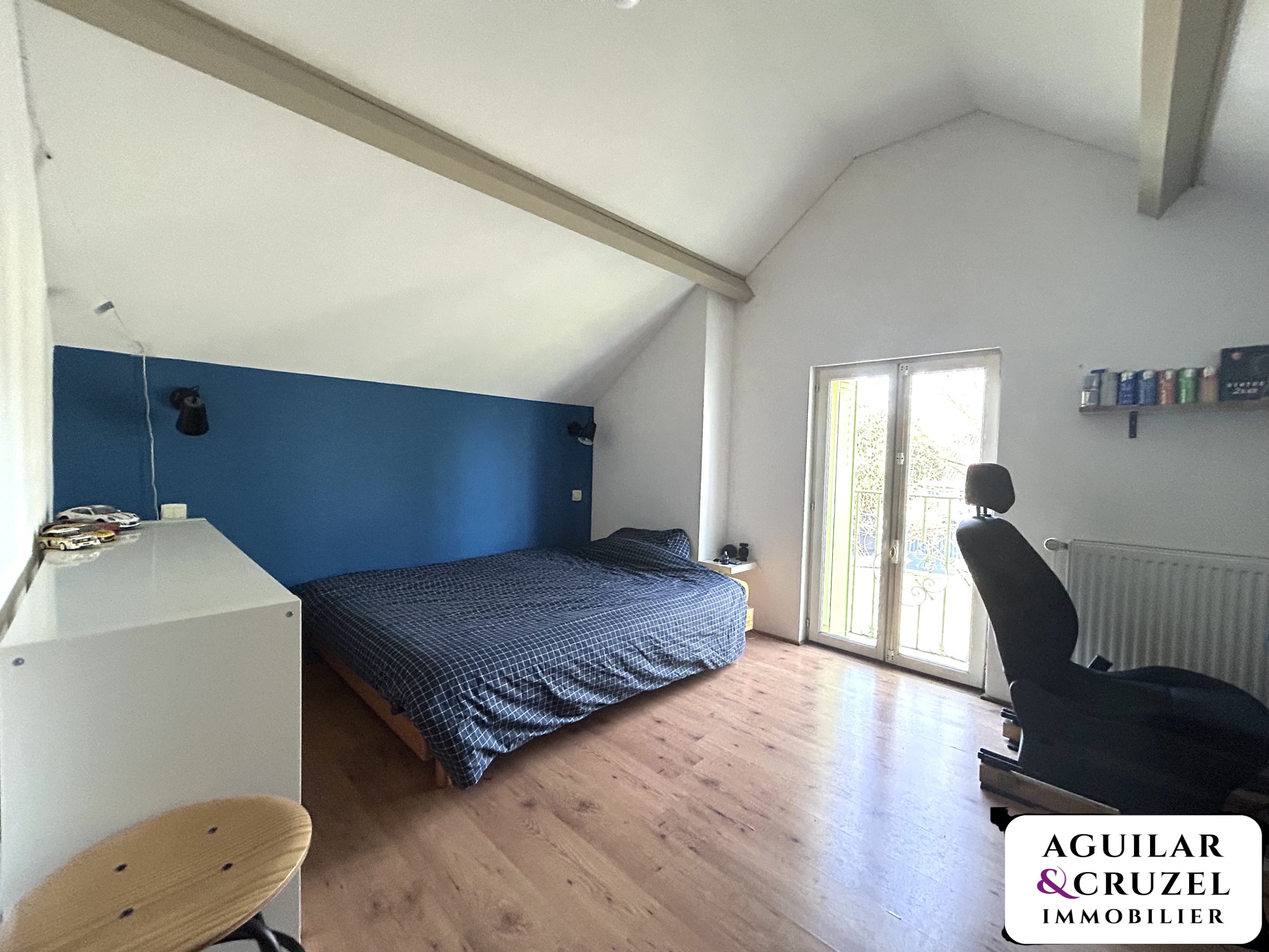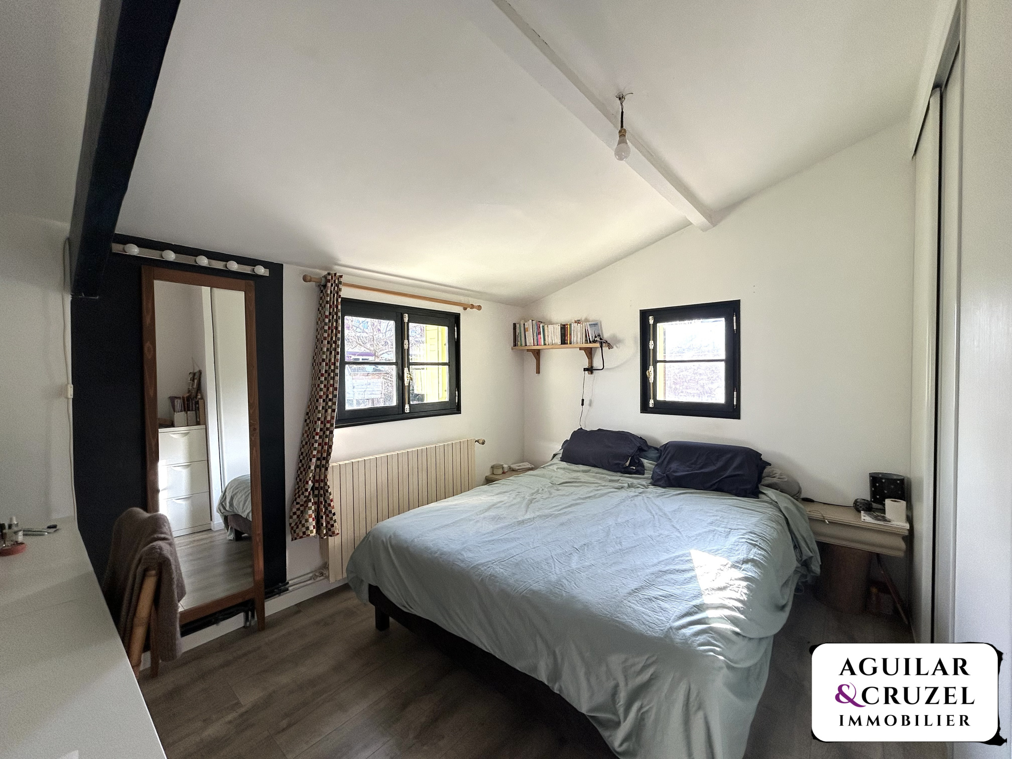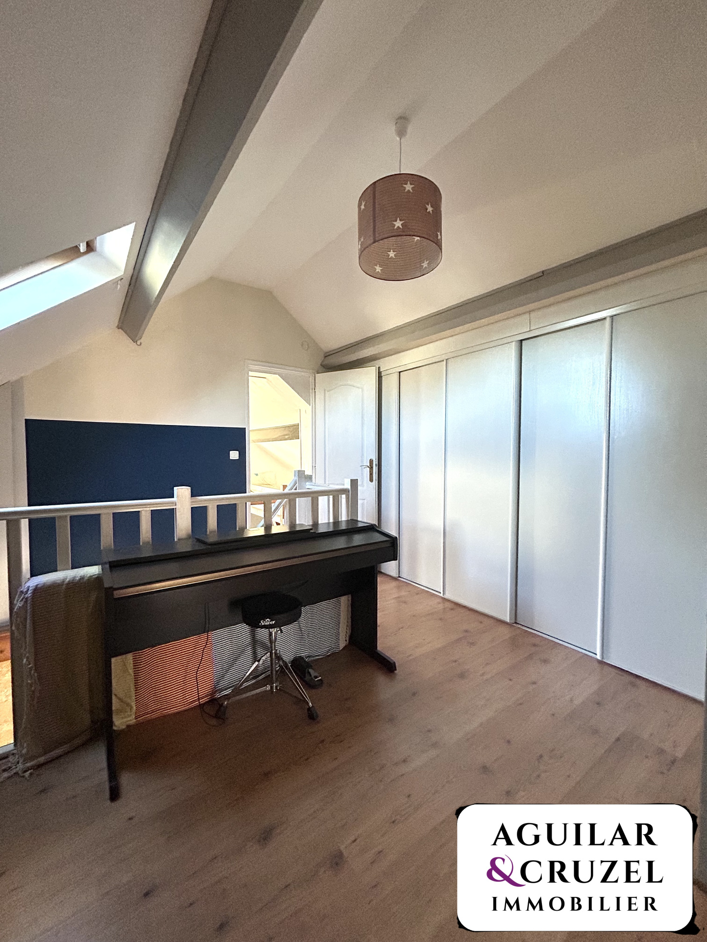 L'étage vous propose deux chambres, une mezzanine idéale pour un espace bureau, détente ou chambre d'appoint et une salle d'eau avec WC.