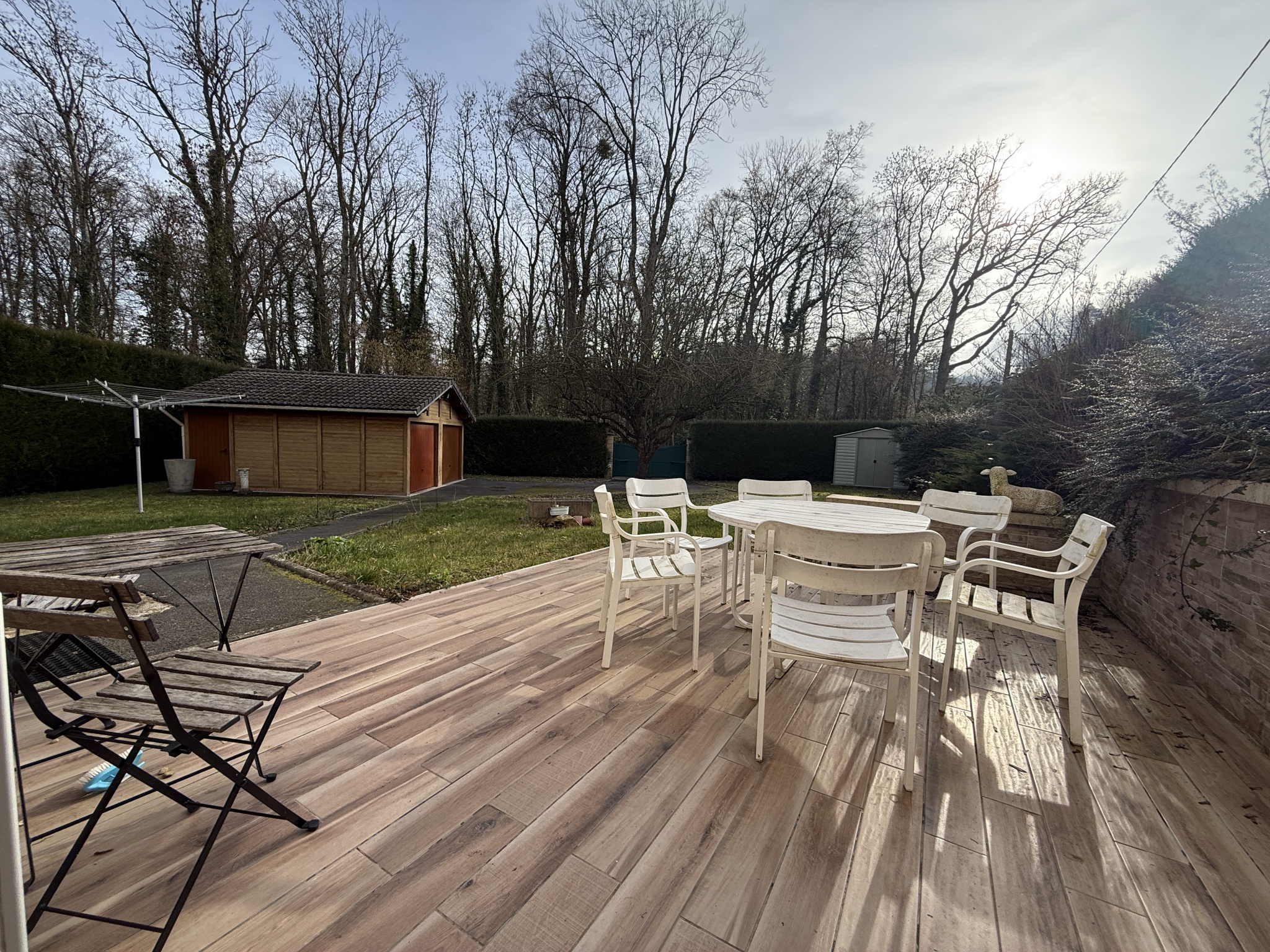 Au sous-sol, belle pièce isolée et chauffée de 32m2, cuisine d'été aménagée ouverte sur une terrasse carrelée. Cave
