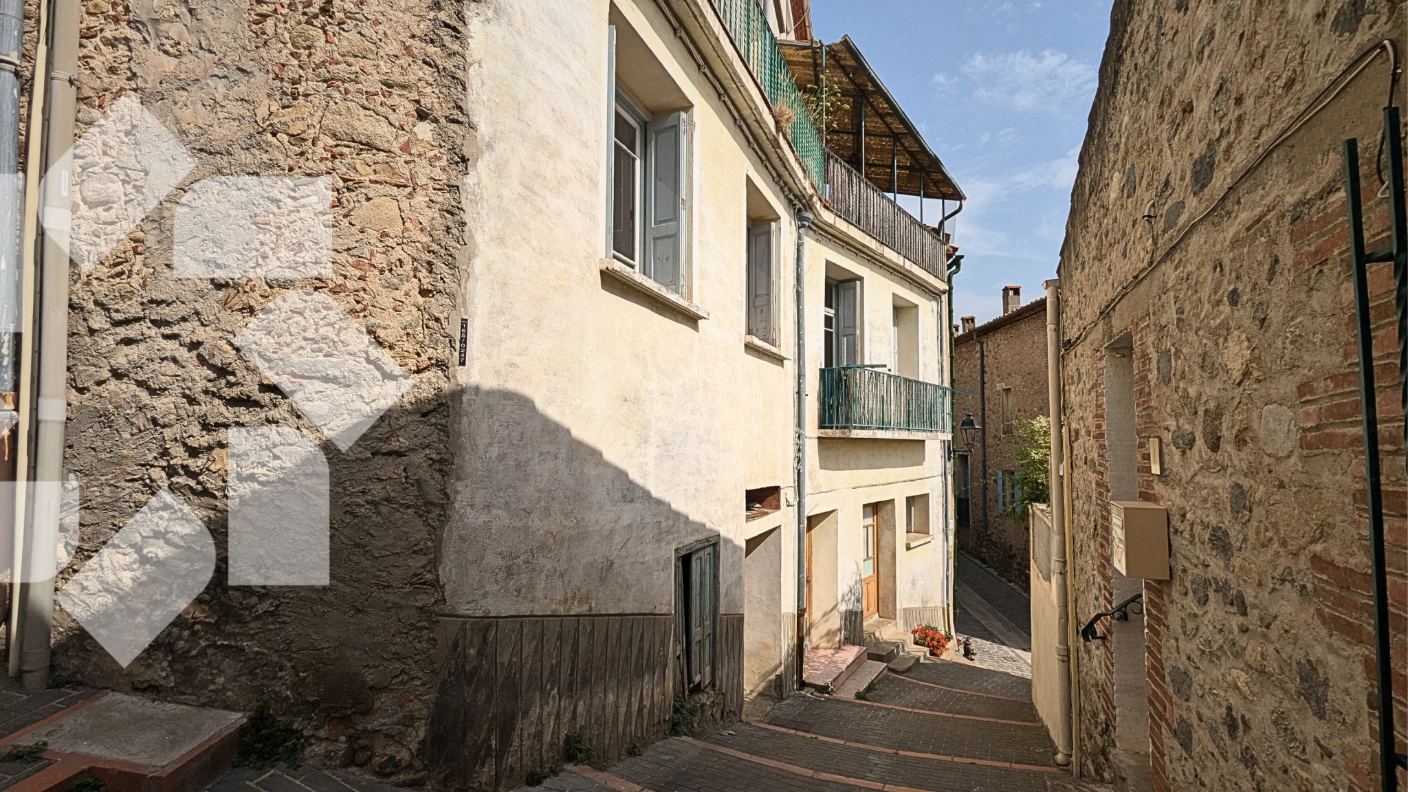 Dans le centre de la commune de RODES (66), Maison de village actuellement composée de deux appartements T3 avec terrasse et balcon, ainsi qu'une remise.