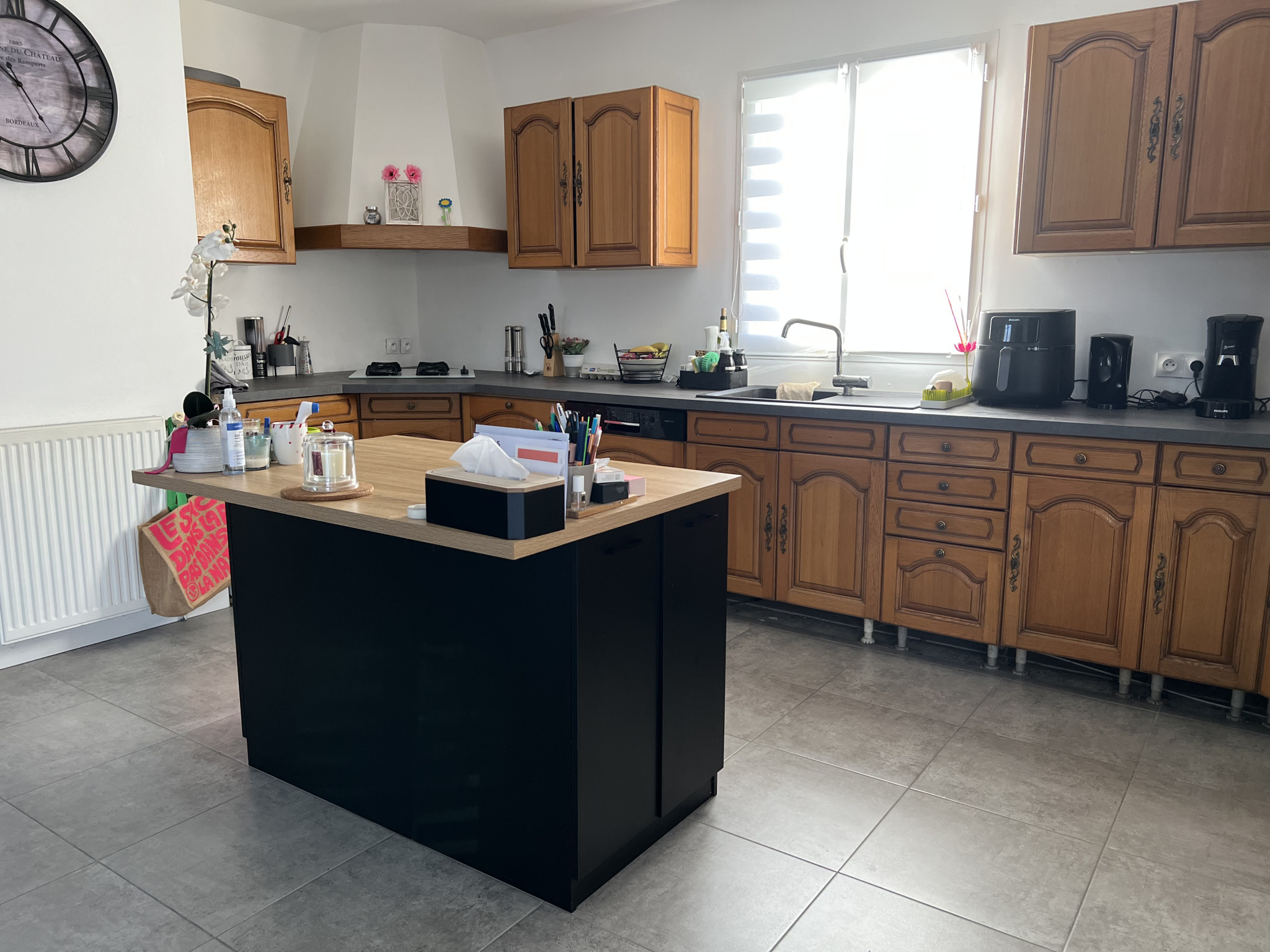 Dès l'entrée, vous découvrirez une belle pièce de vie lumineuse avec cuisine américaine aménagée, idéale pour partager des moments conviviaux en famille ou entre amis.