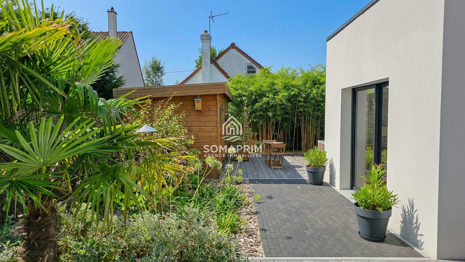 Une terrasse d'environ 130m² plein sud pour accueillir votre séjour d'été,