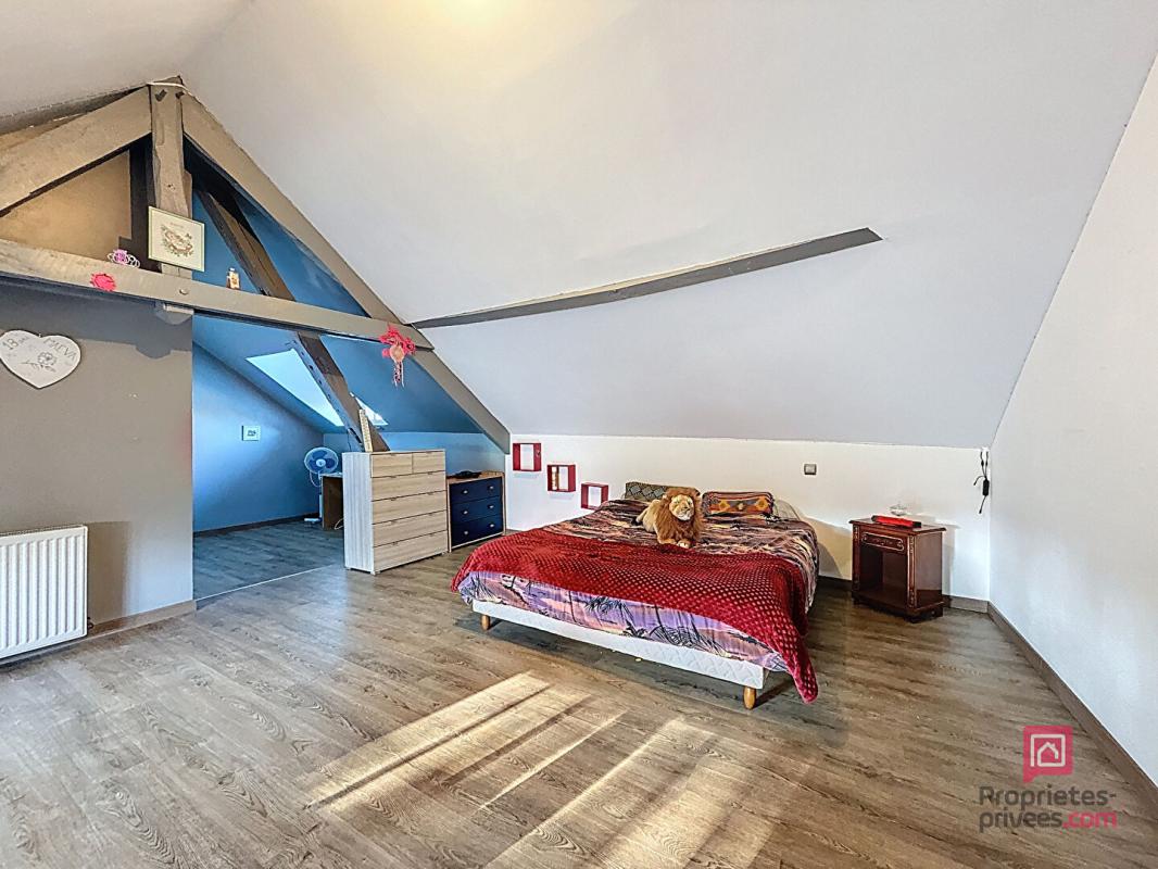 La maison offre de beaux volumes et une organisation confortable. Au rez-de-chaussée, l'entrée dessert une grande cuisine familiale, ainsi qu'un vaste espace de vie de 45 m² comprenant un salon ouvert sur la salle à manger. Une suite parentale permet une vraie vie de plain-pied, avec chambre, salle d'eau et WC séparés. Ce niveau est complété par un cellier, une seconde salle d'eau, un autre WC et une buanderie, offrant de nombreux espaces fonctionnels.