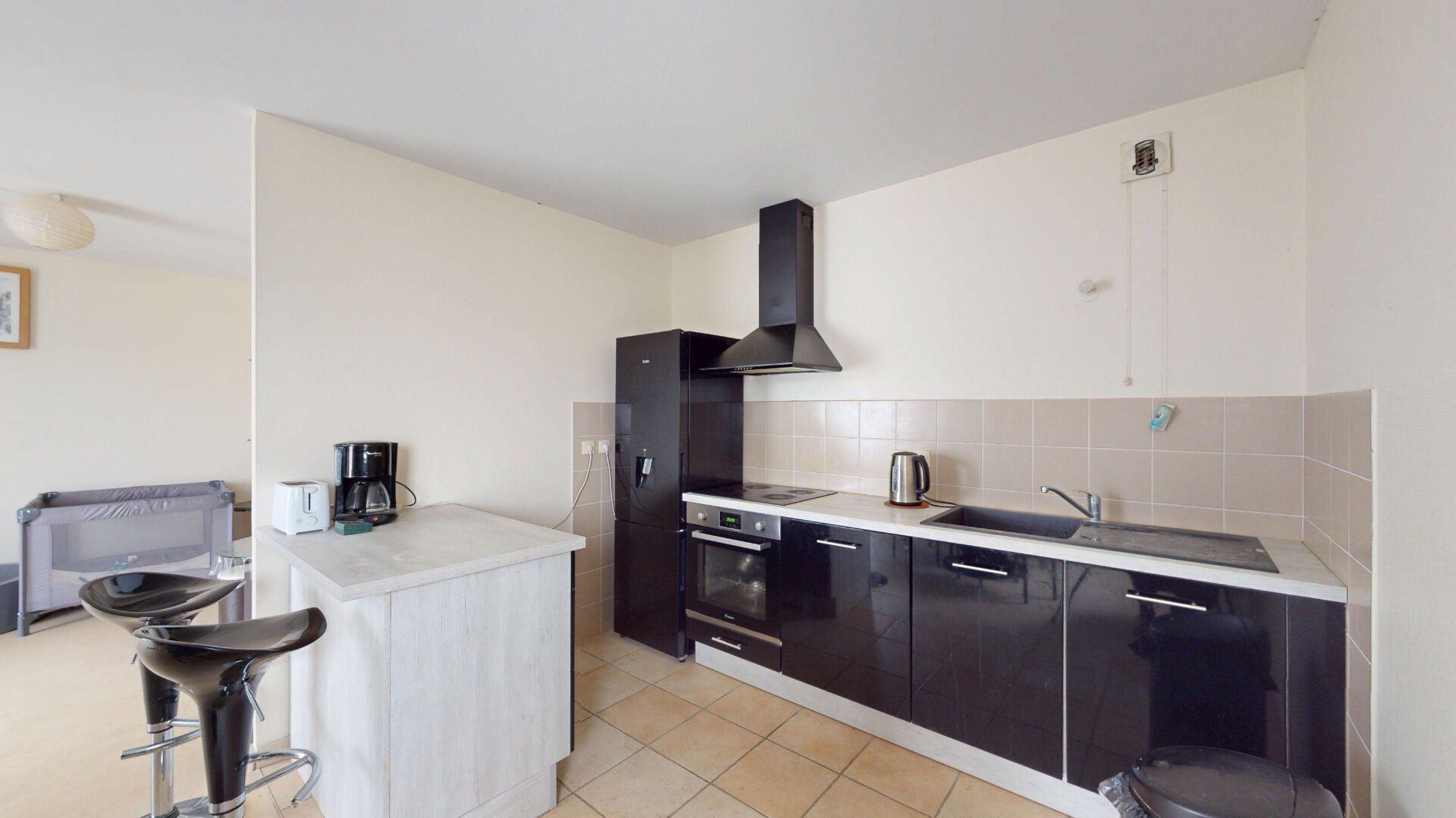 L'entrée s'ouvre sur un vaste salon-séjour baigné de lumière, avec un accès direct au balcon, idéal pour profiter des beaux jours en toute tranquillité. La cuisine équipée, ouverte sur l'espace de vie, apporte convivialité et fonctionnalité à l'ensemble.