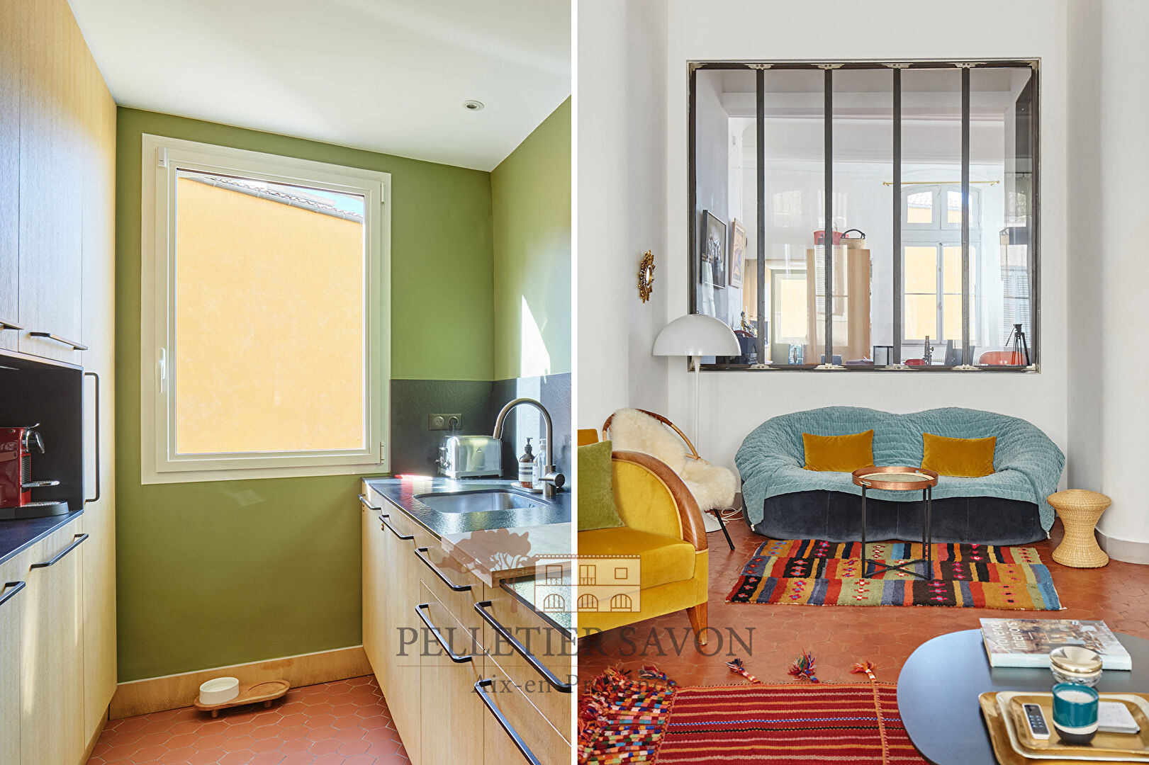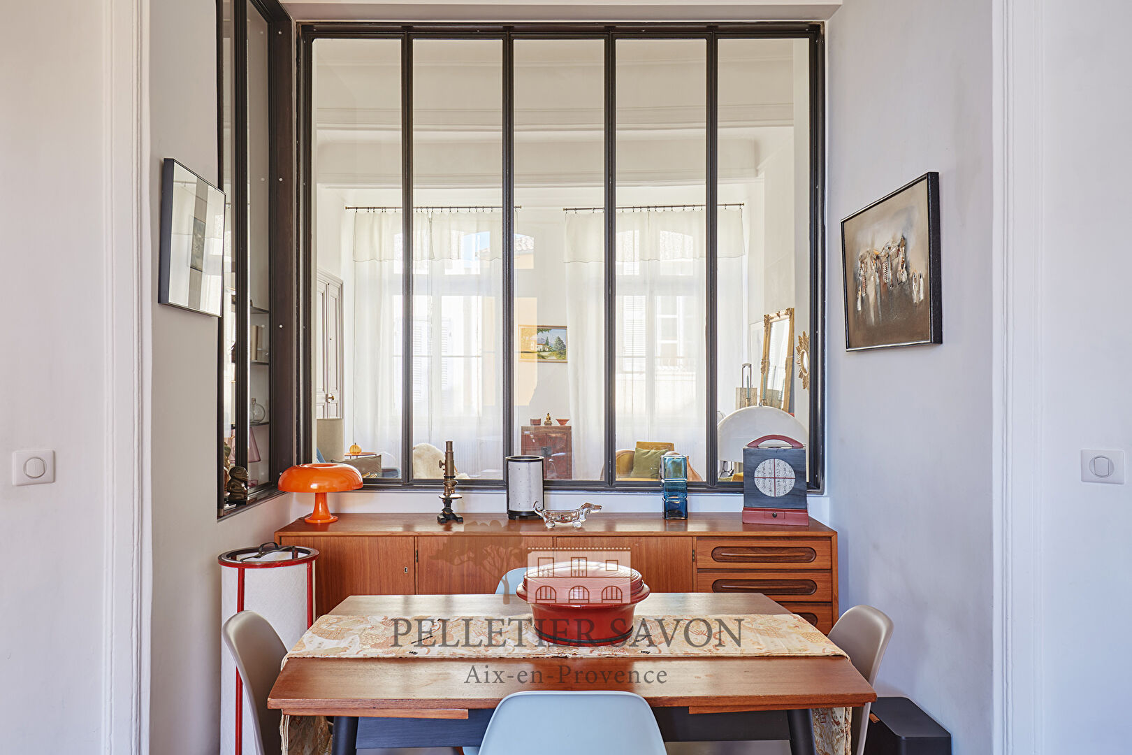 Au coeur d'Aix-en-Provence, dans un quartier prestigieux, cet appartement traversant conjugue luminosité, raffinement et fonctionnalité. Rénové avec soin, il offre des prestations haut de gamme : décoration contemporaine signée par un architecte, matériaux nobles et finitions irréprochables. La verrière, élément architectural marquant, apporte une touche de modernité et baigne l'espace de vie de lumière naturelle. Belle hauteur sous plafond, cheminée d'ornement, tomette anciennes font le charme de ce lieu de vie typiquement aixois. Deux chambres dont une suite parentale, salon spacieux, salle à manger conviviale, cuisine équipée : chaque pièce a été pensée pour concilier confort et esthétique. Emplacement idéal : à proximité des commerces, cafés et sites historiques, pour une vie urbaine à la fois dynamique et sereine. Disponible pour une résidence principale ou un investissement, ce bien représente une opportunité rare. Copropriété dotée d'un jardinet privatif, cave. Garage possible en complément. Visite sur rendez-vous.