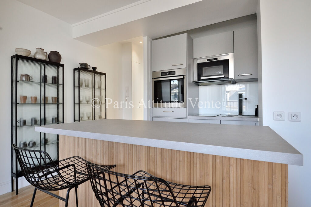 Rénové et repensé par un designer parisien, il développe une distribution simple et efficace. Il se compose d'une entrée, d'un un salon lumineux avec une cuisine ouverte entièrement équipée, d'une chambre et une salle de bains avec toilettes. L'ensemble a été rénové avec des matériaux actuels, parquet en bois massif et aménagements intégrés, offrant un intérieur charmant et immédiatement habitable ou exploitable en location.