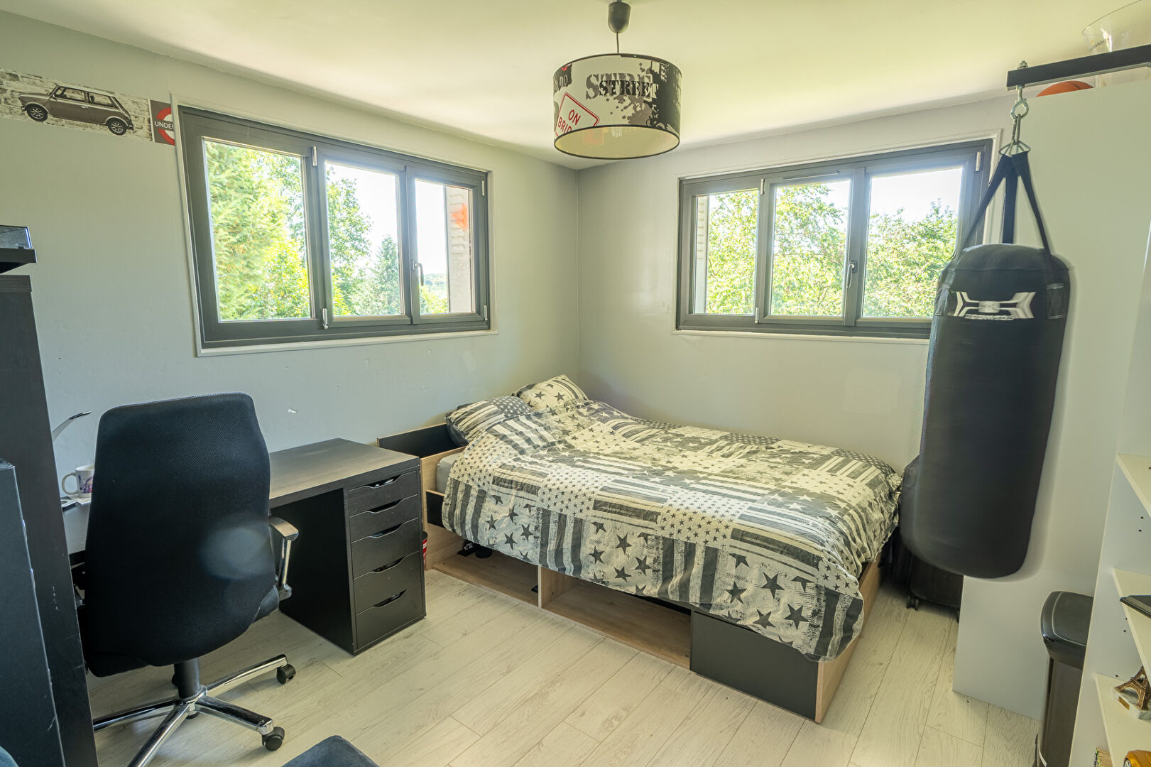 L'espace nuit comprend une suite parentale avec dressing, salle de bains et accès jardin, deux chambres supplémentaires et une salle d'eau. Les combles aménagés permettent d'aménager un espace jeux, bureau ou couchages d'appoint.