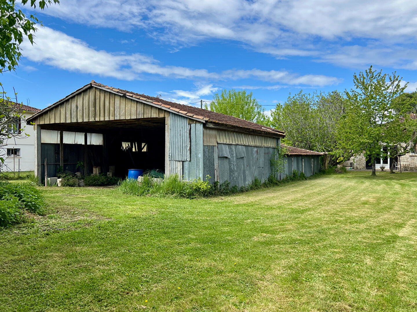 À l'extérieur, un hangar d'environ 200 m² vous offre de nombreuses possibilités : stockage, atelier, activité artisanale ou projet d'aménagement complémentaire.