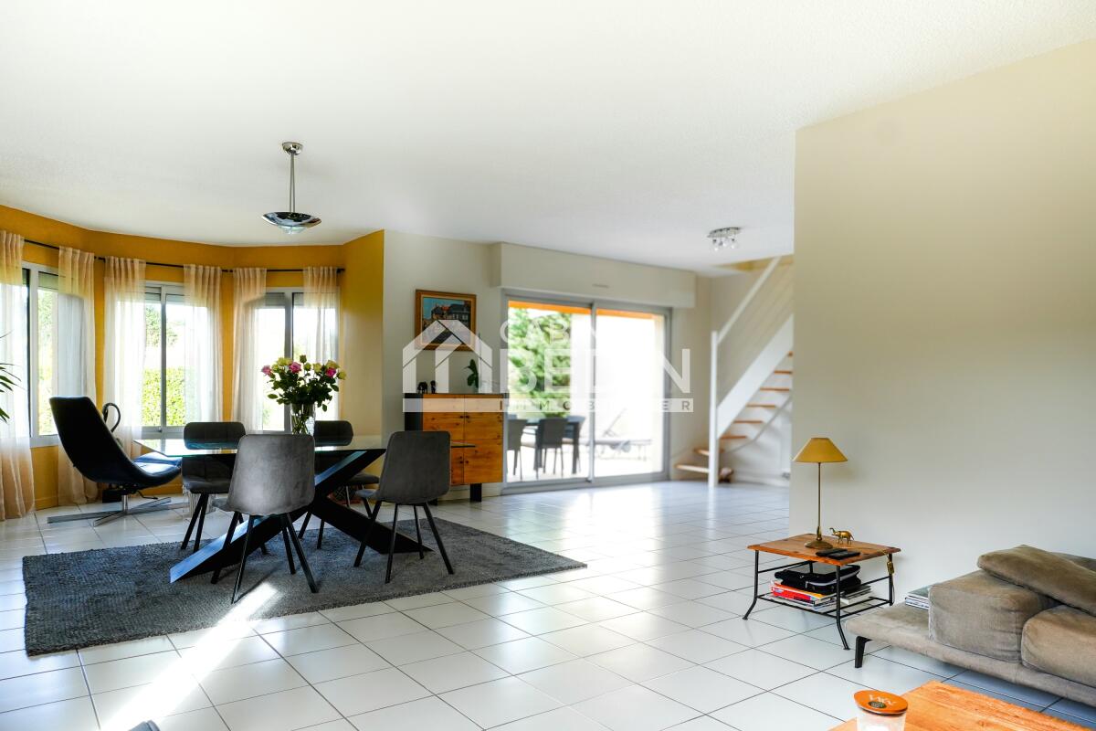 L?intérieur se distingue par un vaste espace de vie de 70 m², baigné de lumière grâce à de larges baies vitrées ouvrant sur le jardin. Le salon et la salle à manger forment un lieu convivial, idéal pour recevoir. La cuisine, moderne et fonctionnelle, bénéficie d?un accès direct à une buanderie menant au garage. Côté nuit, la villa dispose de 4 chambres spacieuses, dont une suite parentale avec salle de bain privée, dressing et boudoir pouvant se transformer en 5ème chambre.